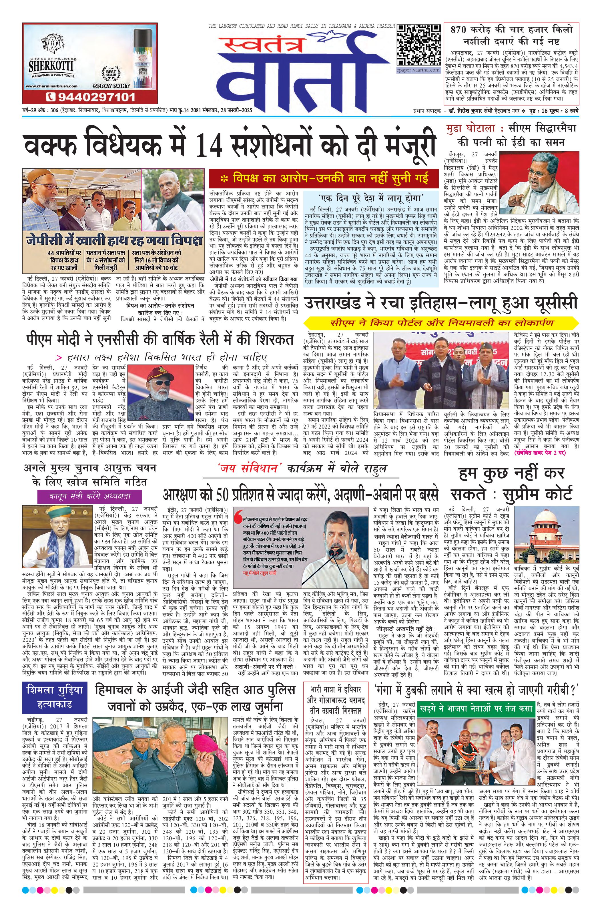 Swatantra Vaartha - 28 Jan 2025 - - Page 1