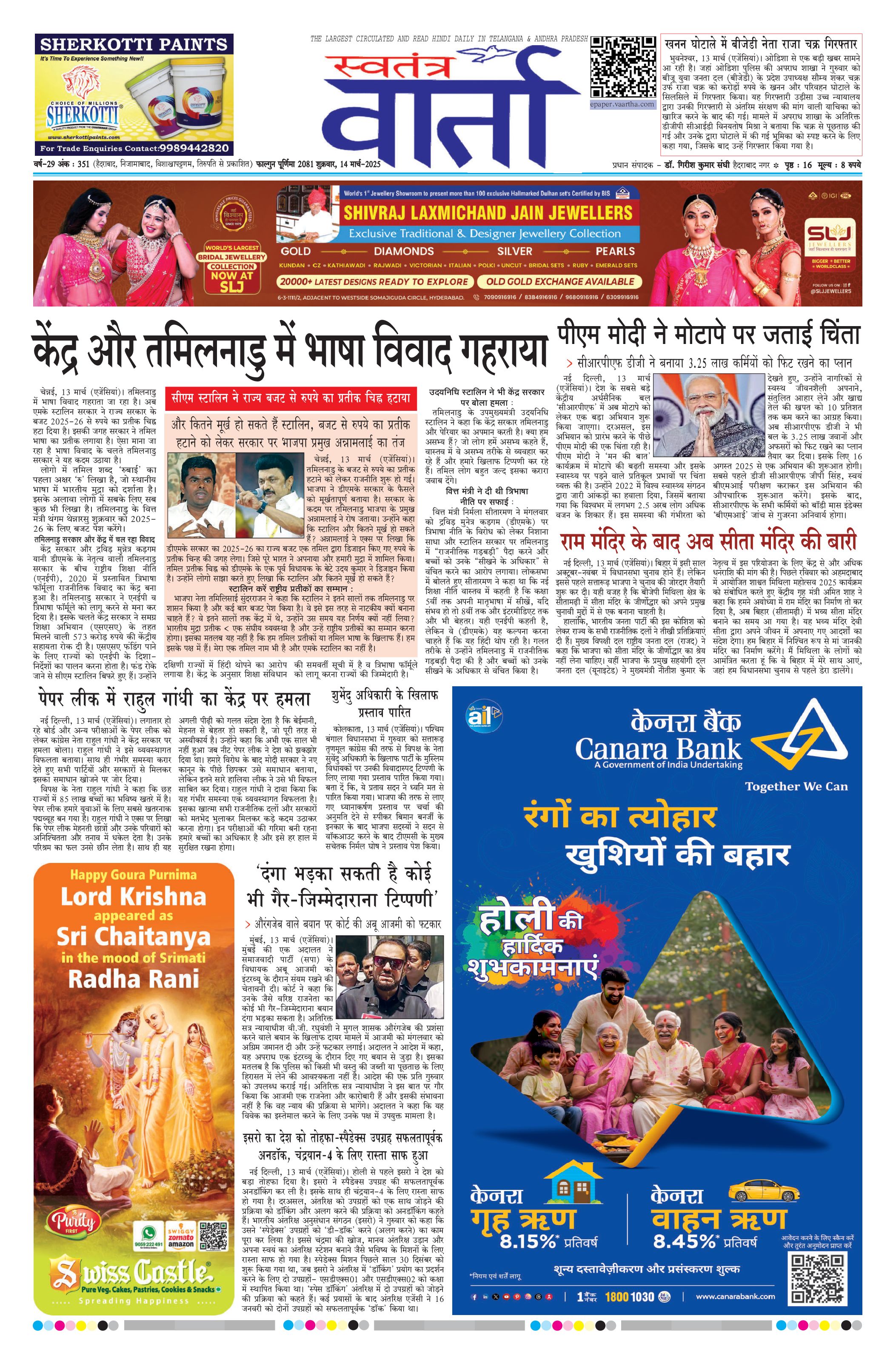 Swatantra Vaartha - 14 Mar 2025 - - Page 1