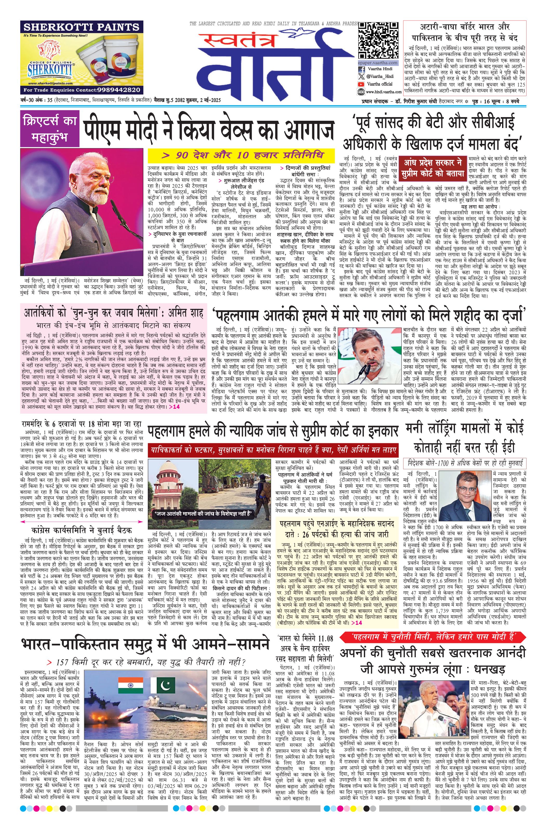 Swatantra Vaartha - 02 May 2025 - - Page 1