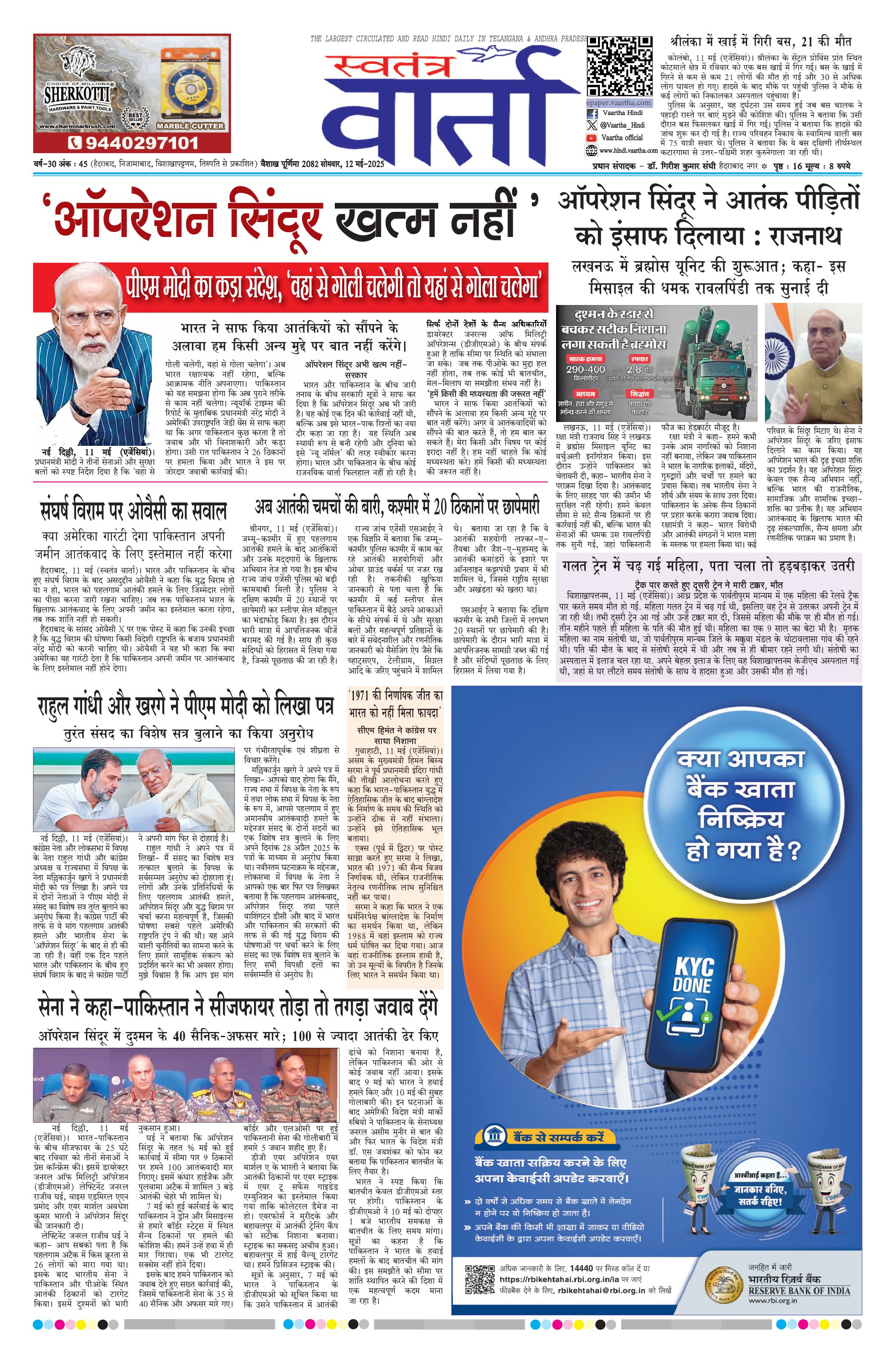 Swatantra Vaartha - 12 May 2025 - - Page 1