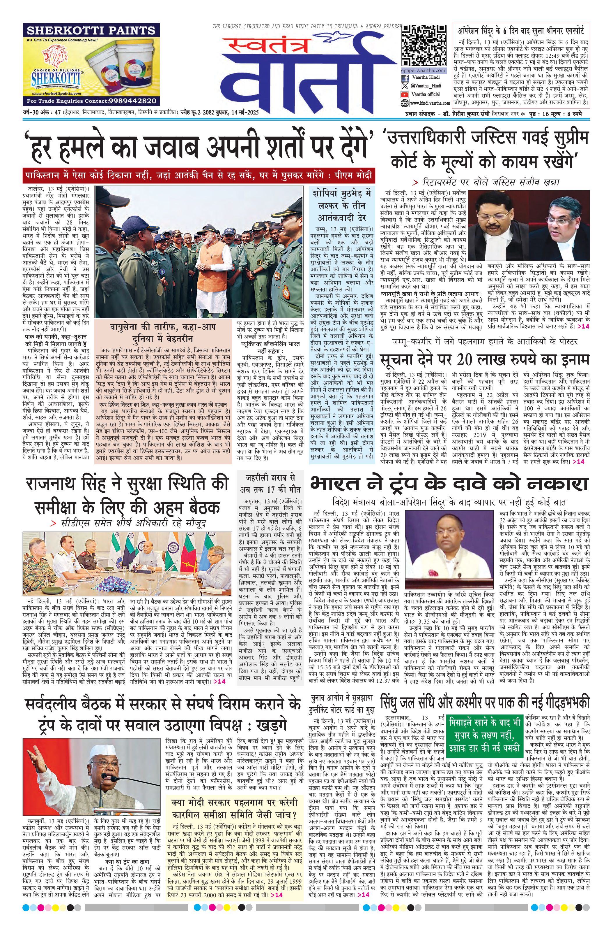 Swatantra Vaartha - 14 May 2025 - - Page 1