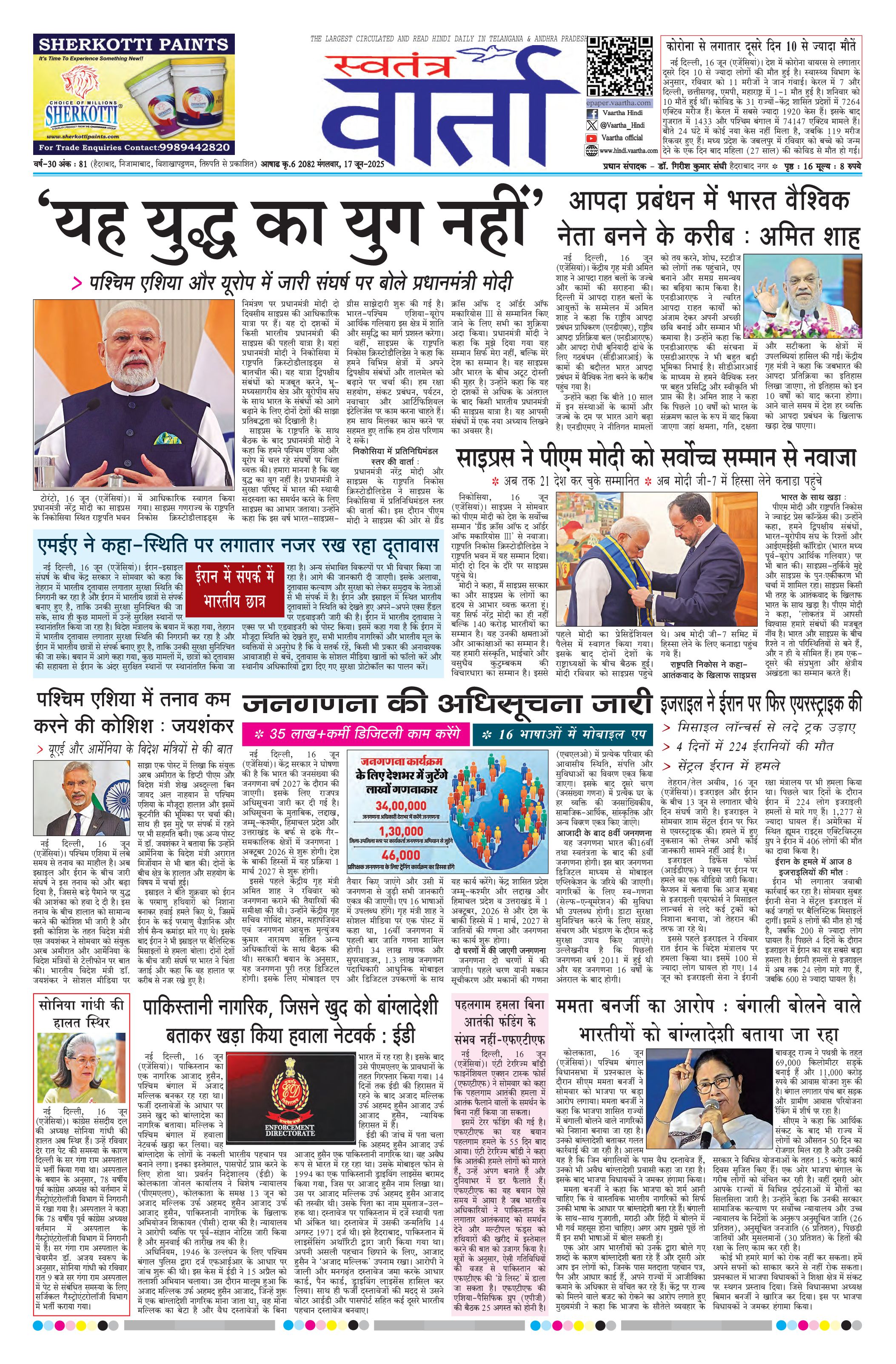 Swatantra Vaartha - 17 Jun 2025 - - Page 1