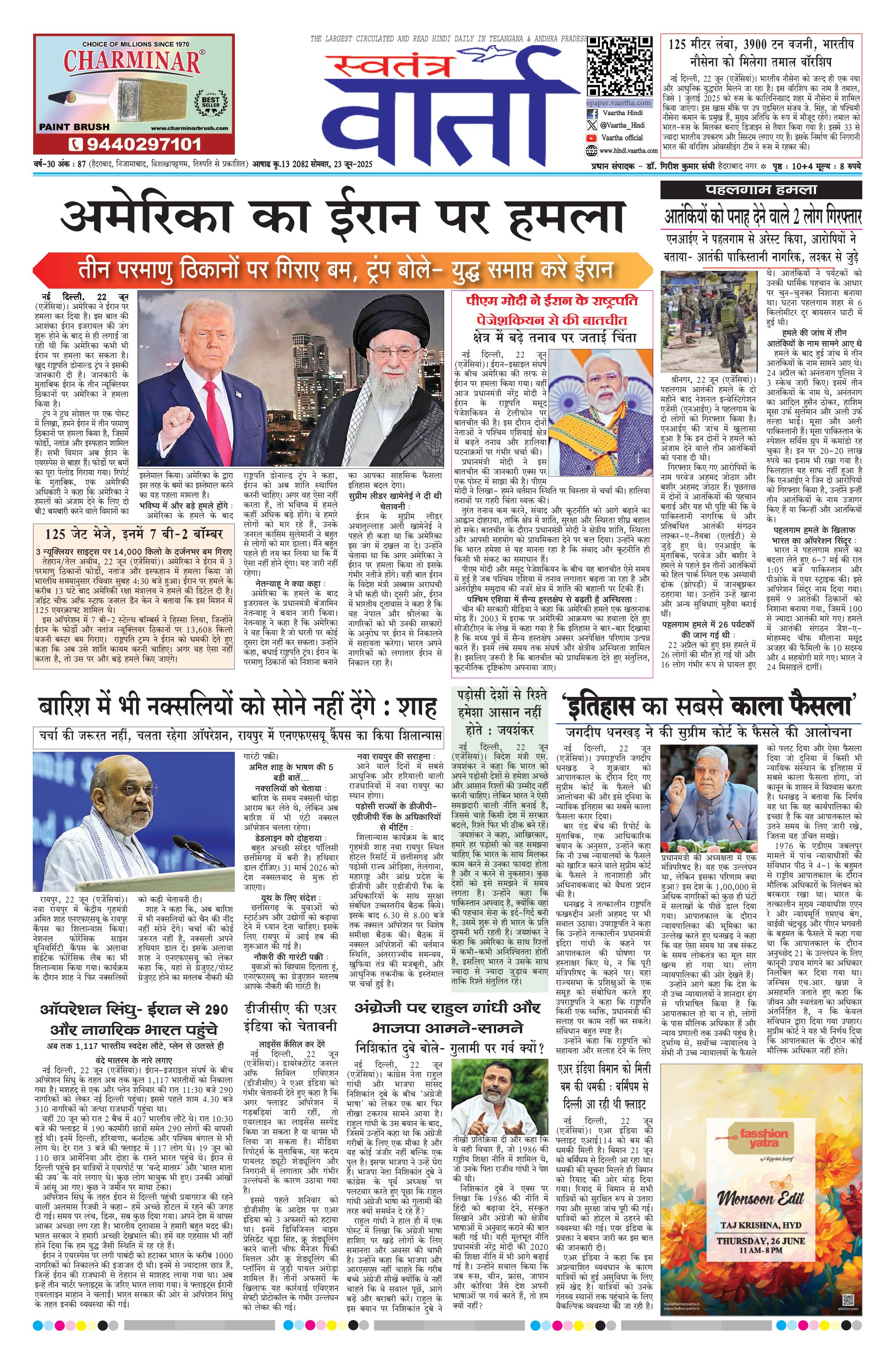 Swatantra Vaartha - 23 Jun 2025 - - Page 1