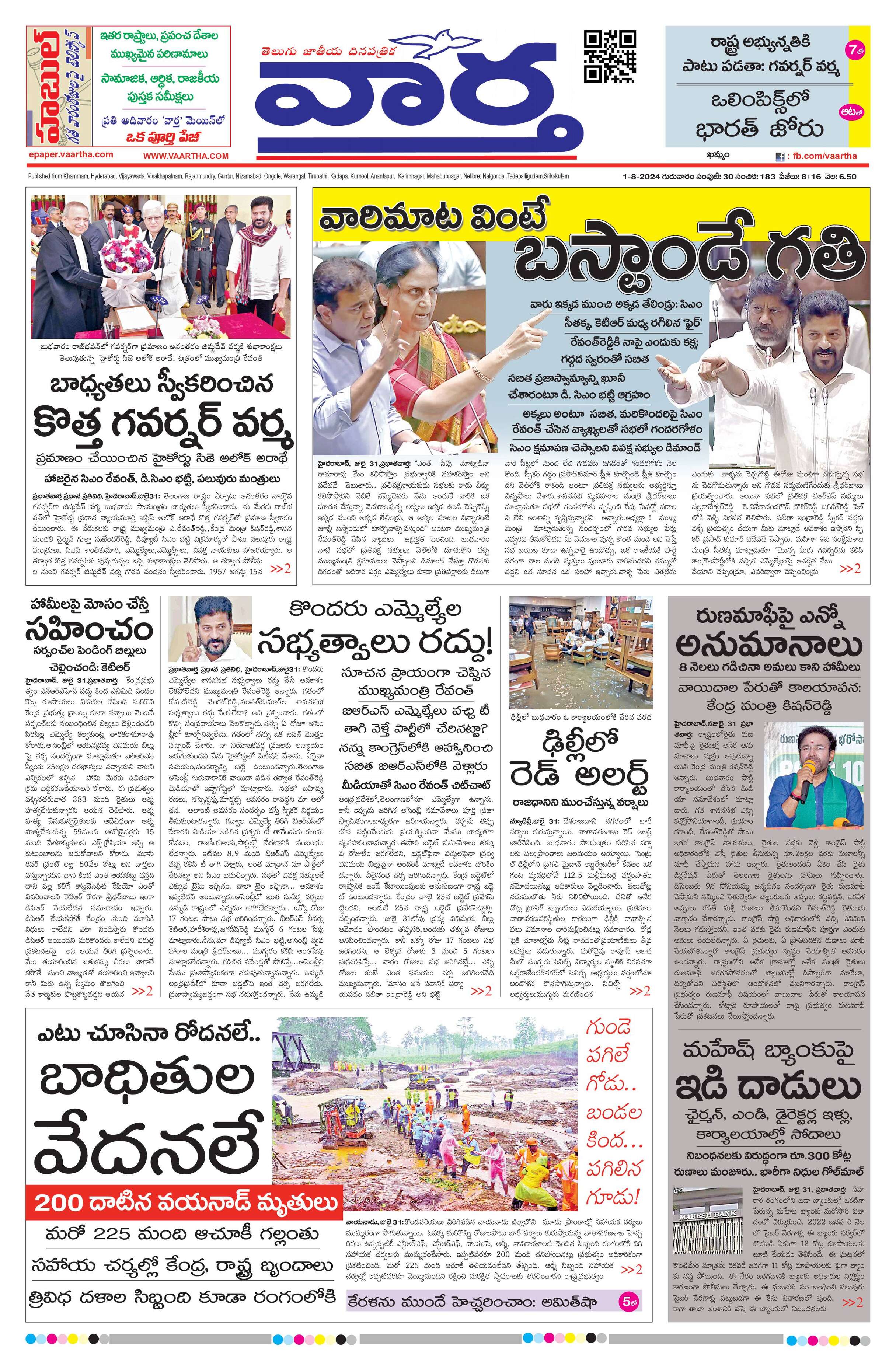 Telangana Main - 01 Aug 2024 - - Page 1