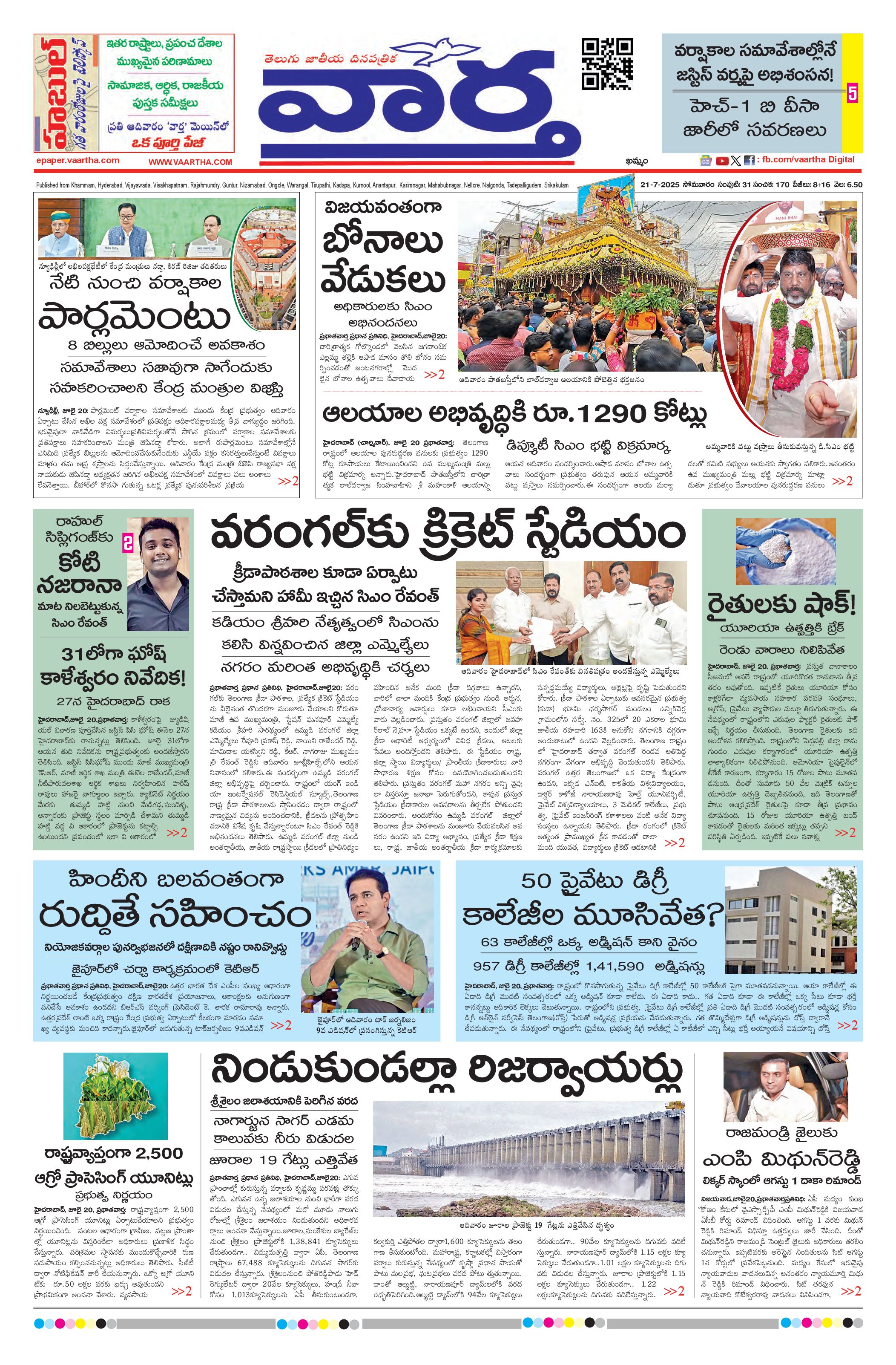 Telangana Main - 21 Jul 2025 - - Page 1
