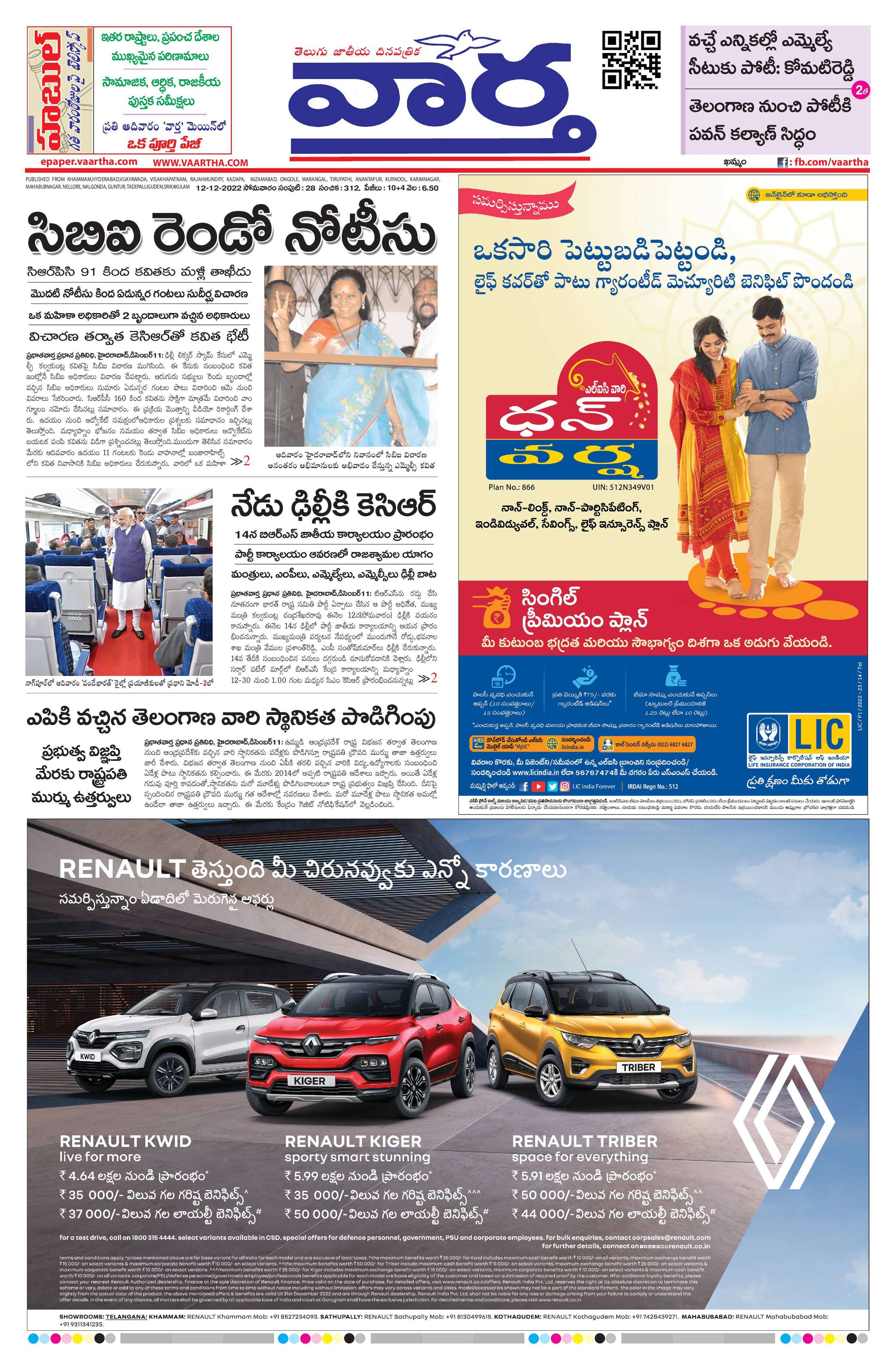 Telangana Main - 12 Dec 2022 - - Page 1