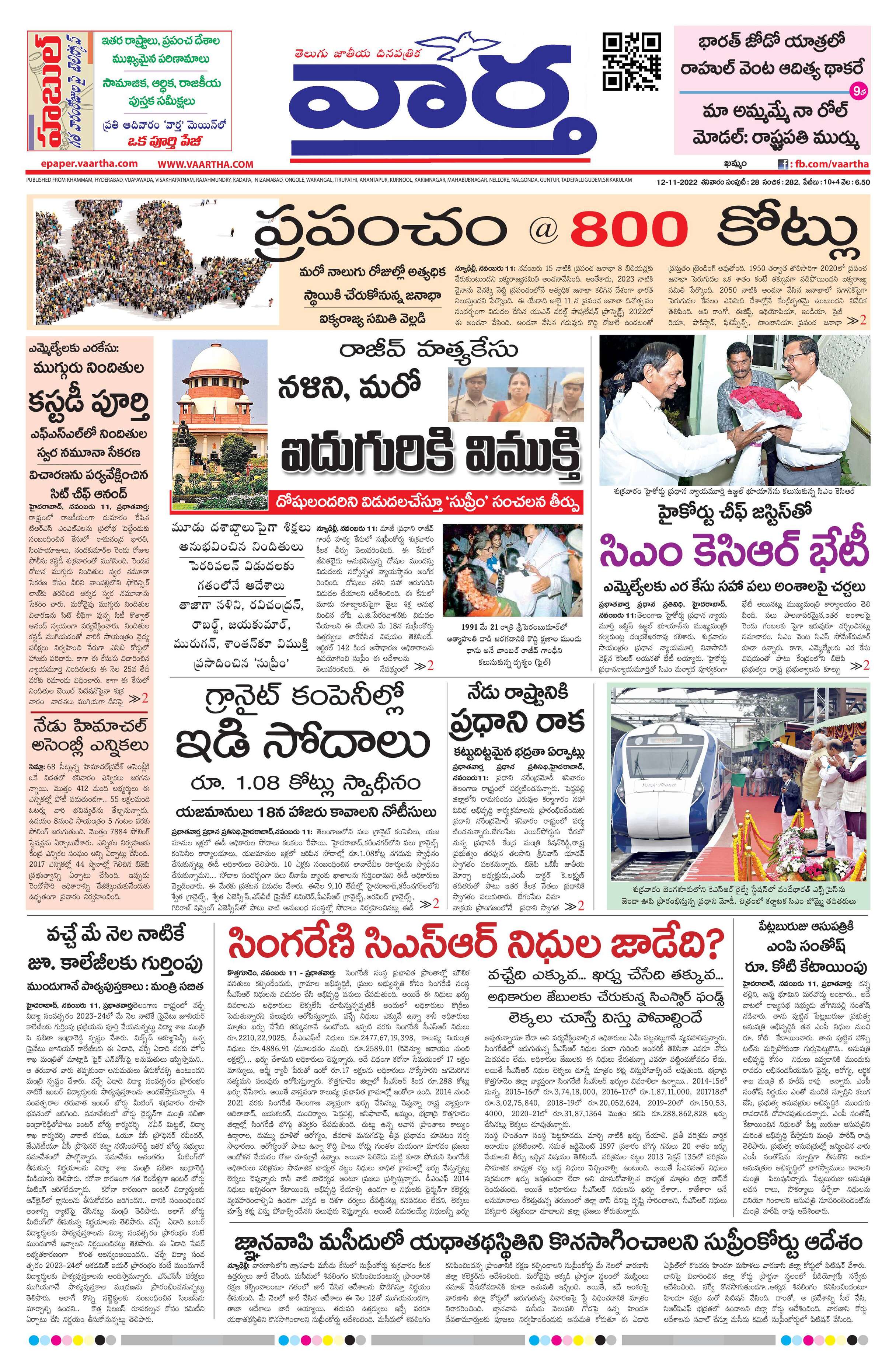 Telangana Main - 12 Nov 2022 - - Page 1