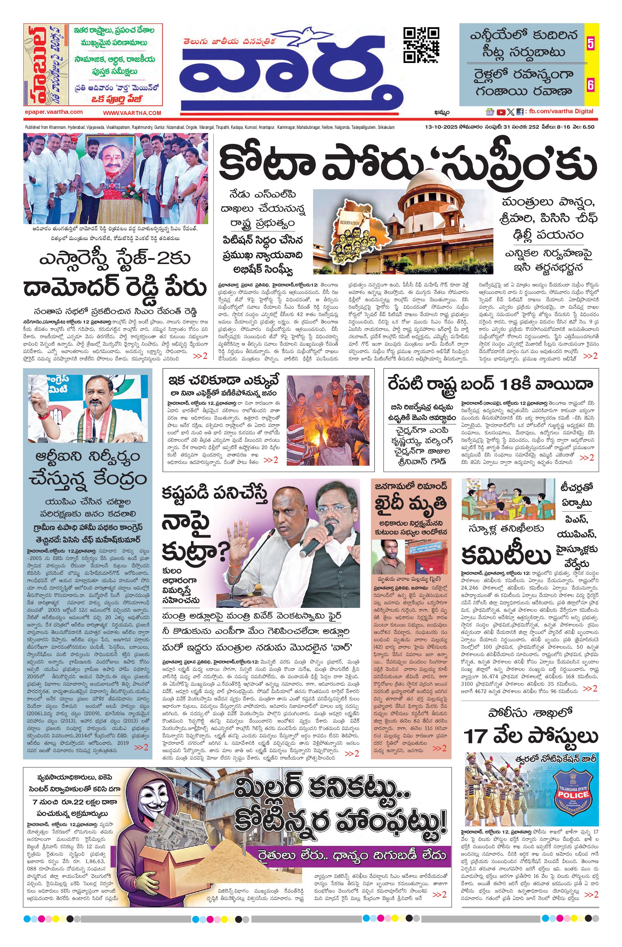 Telangana Main - 13 Oct 2025 - - Page 1