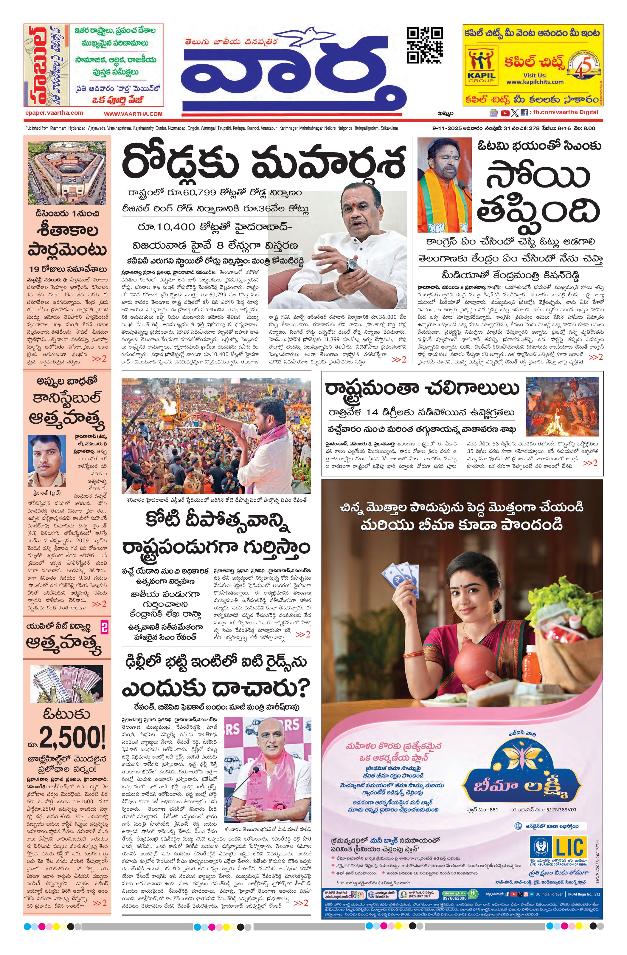 Telangana Main - 09 Nov 2025 - - Page 1