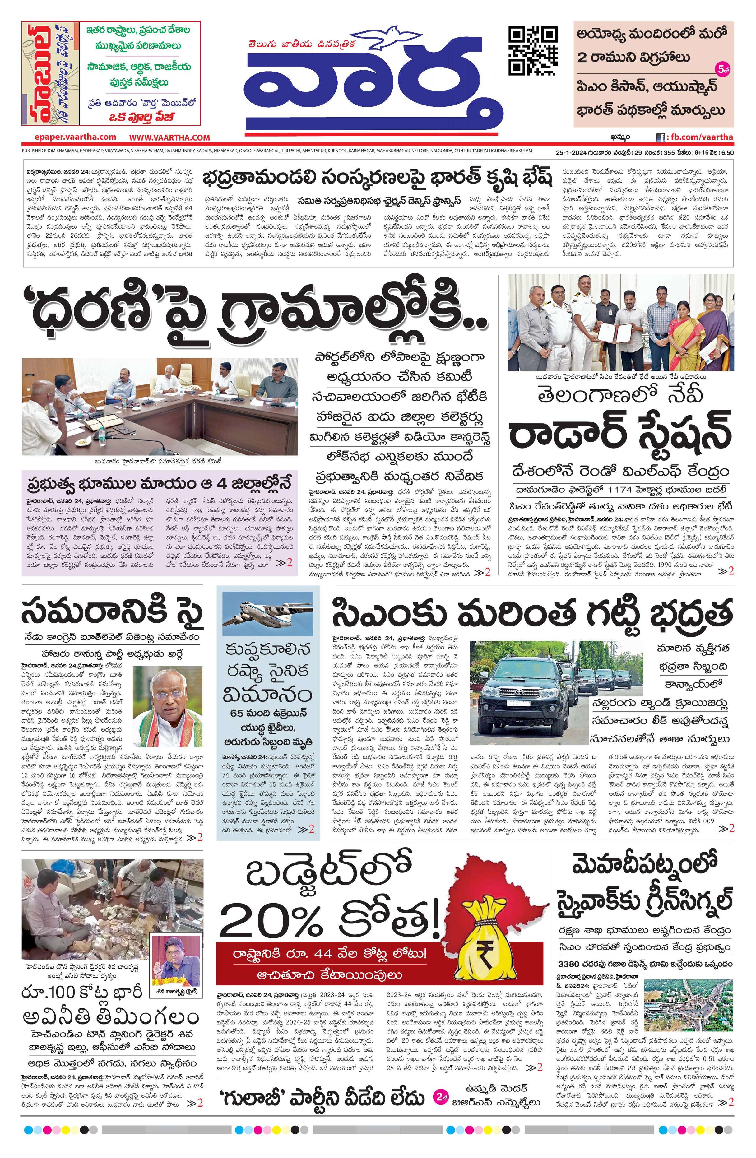 Telangana Main - 25 Jan 2024 - - Page 1