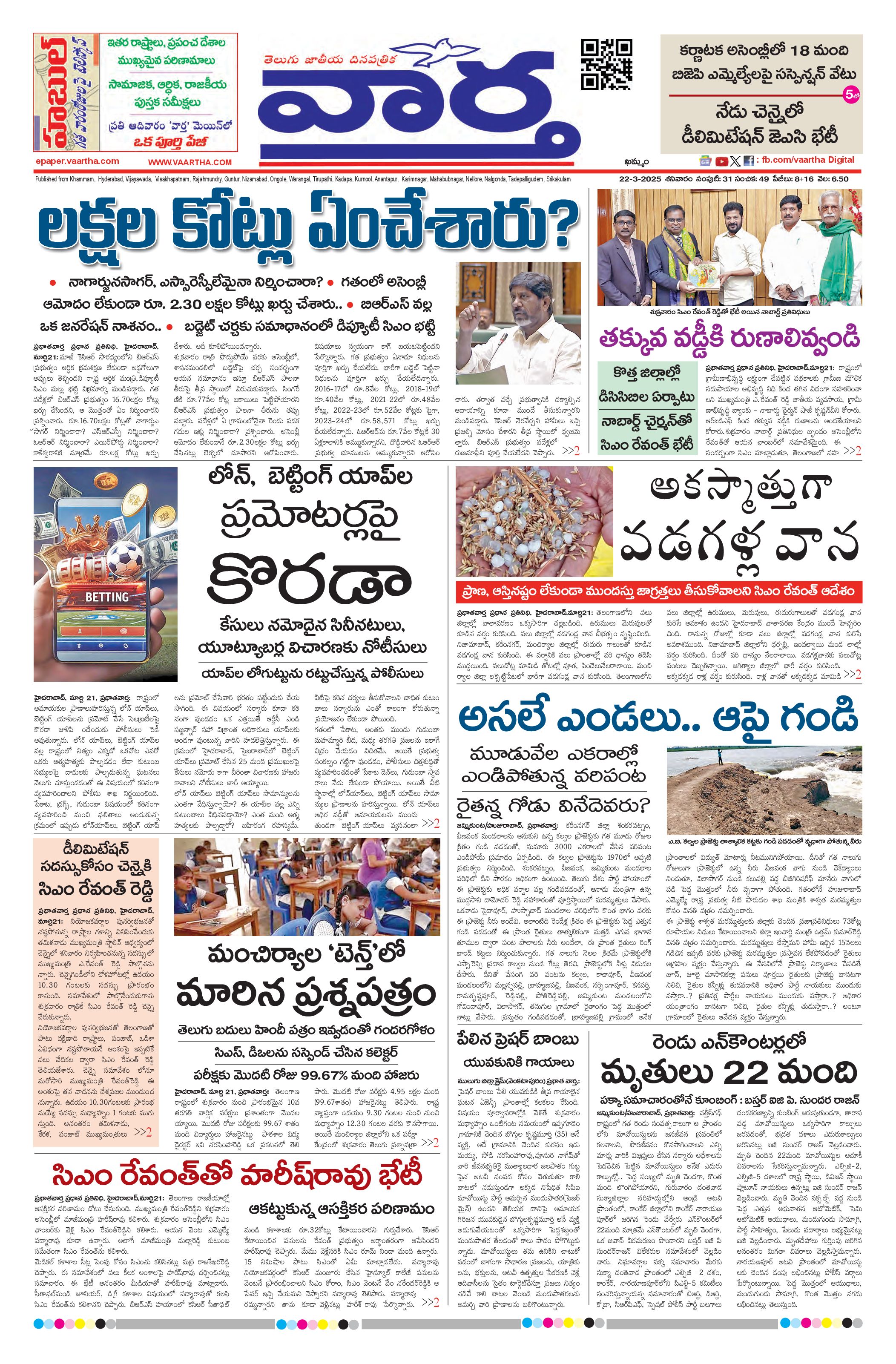 Telangana Main - 22 Mar 2025 - - Page 1