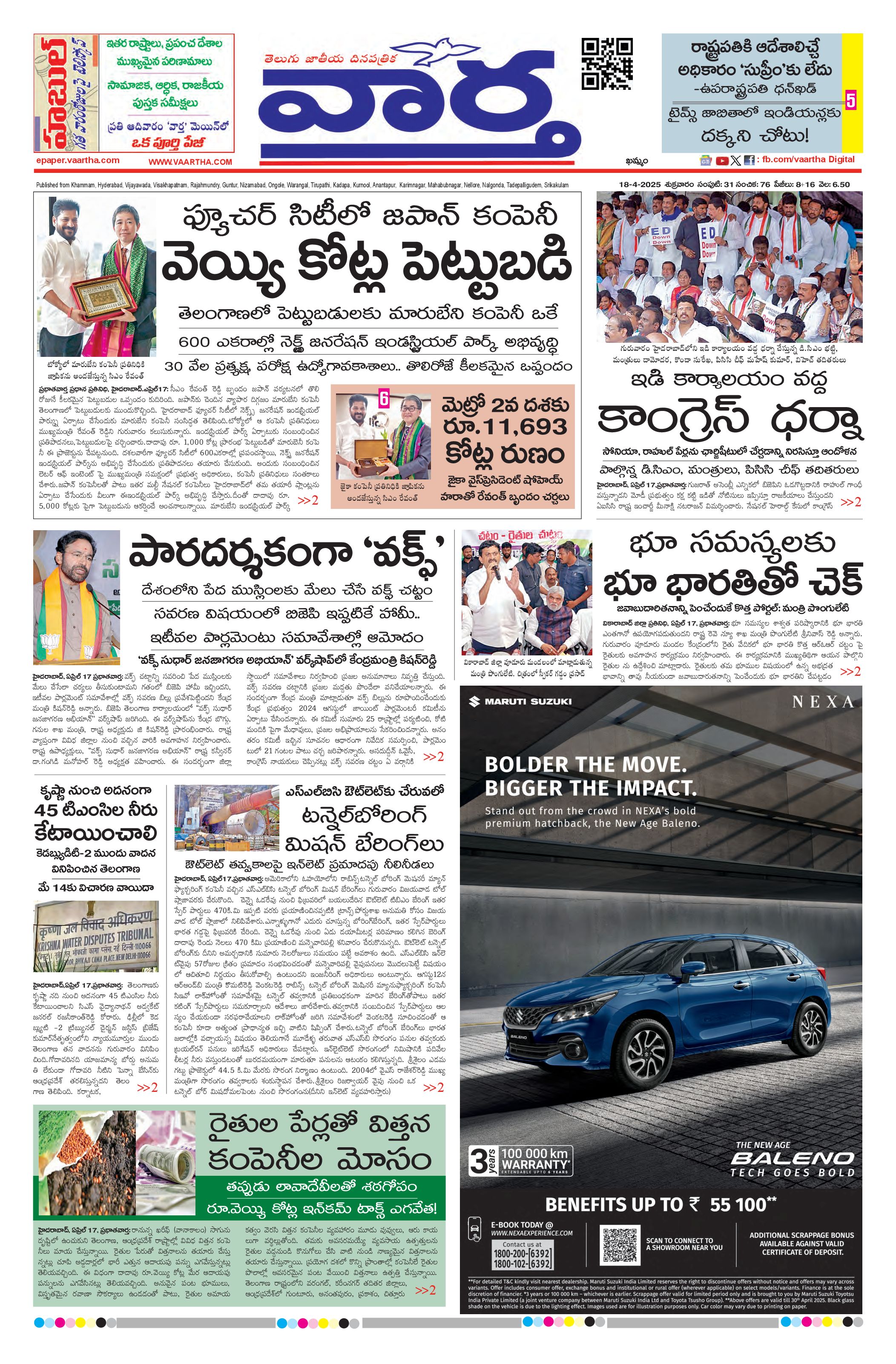 Telangana Main - 18 Apr 2025 - - Page 1