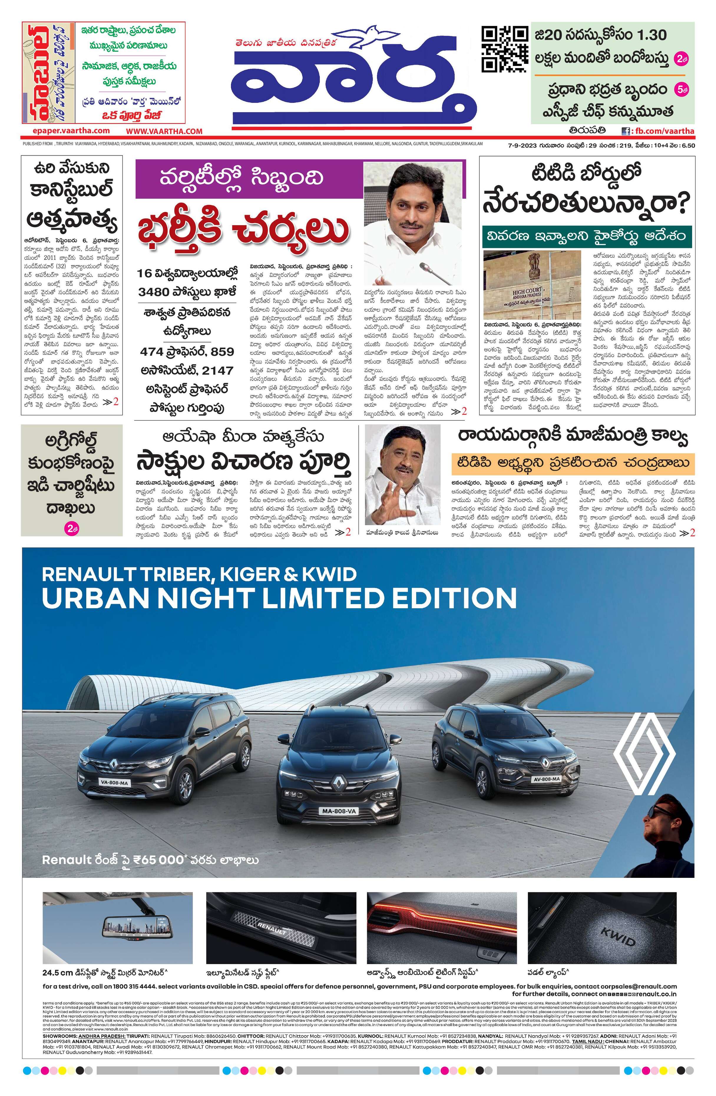 Tirupathi main - 07 Sep 2023 - - Page 1
