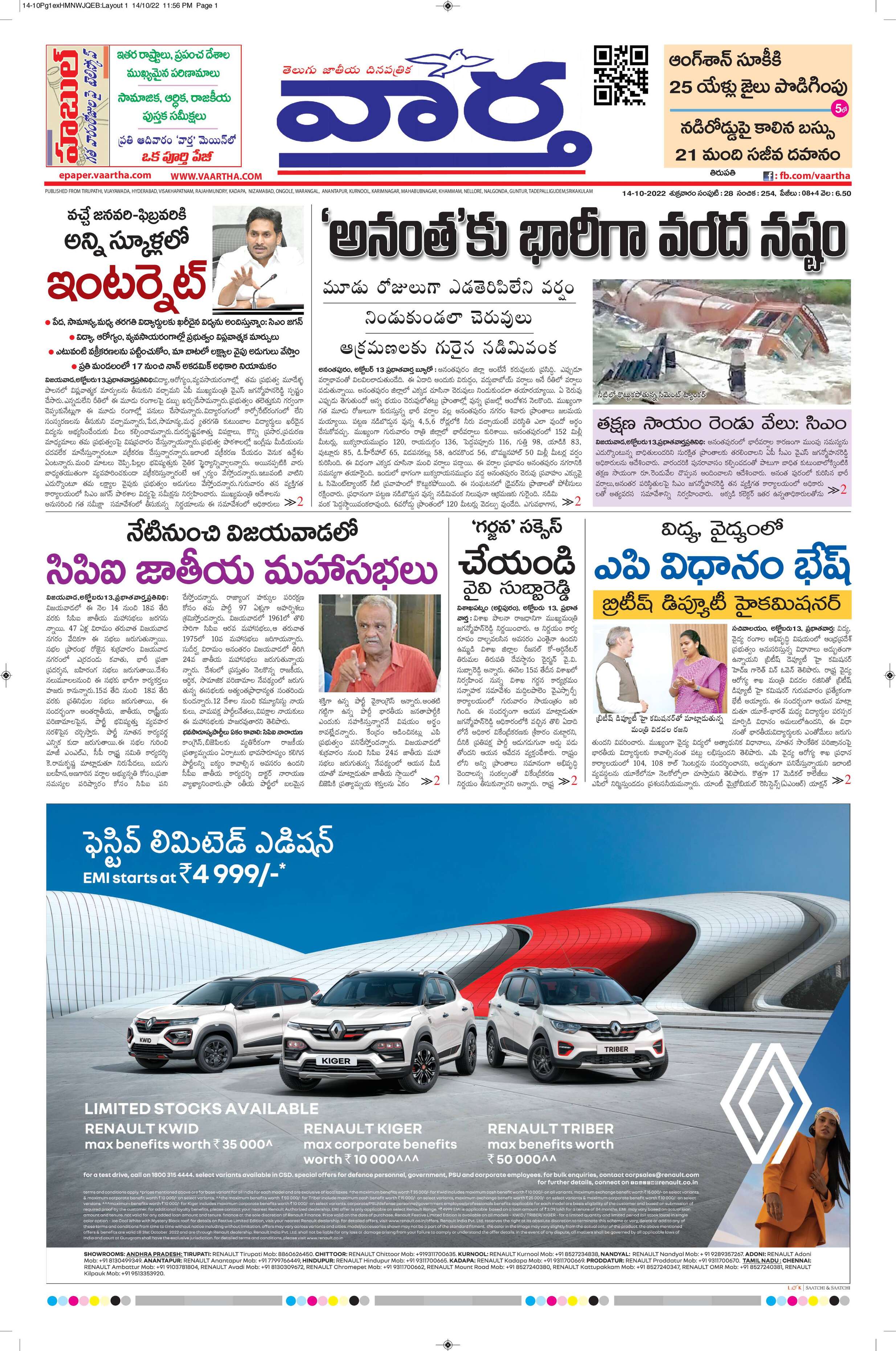 Tirupathi main - 14 Oct 2022 - - Page 1