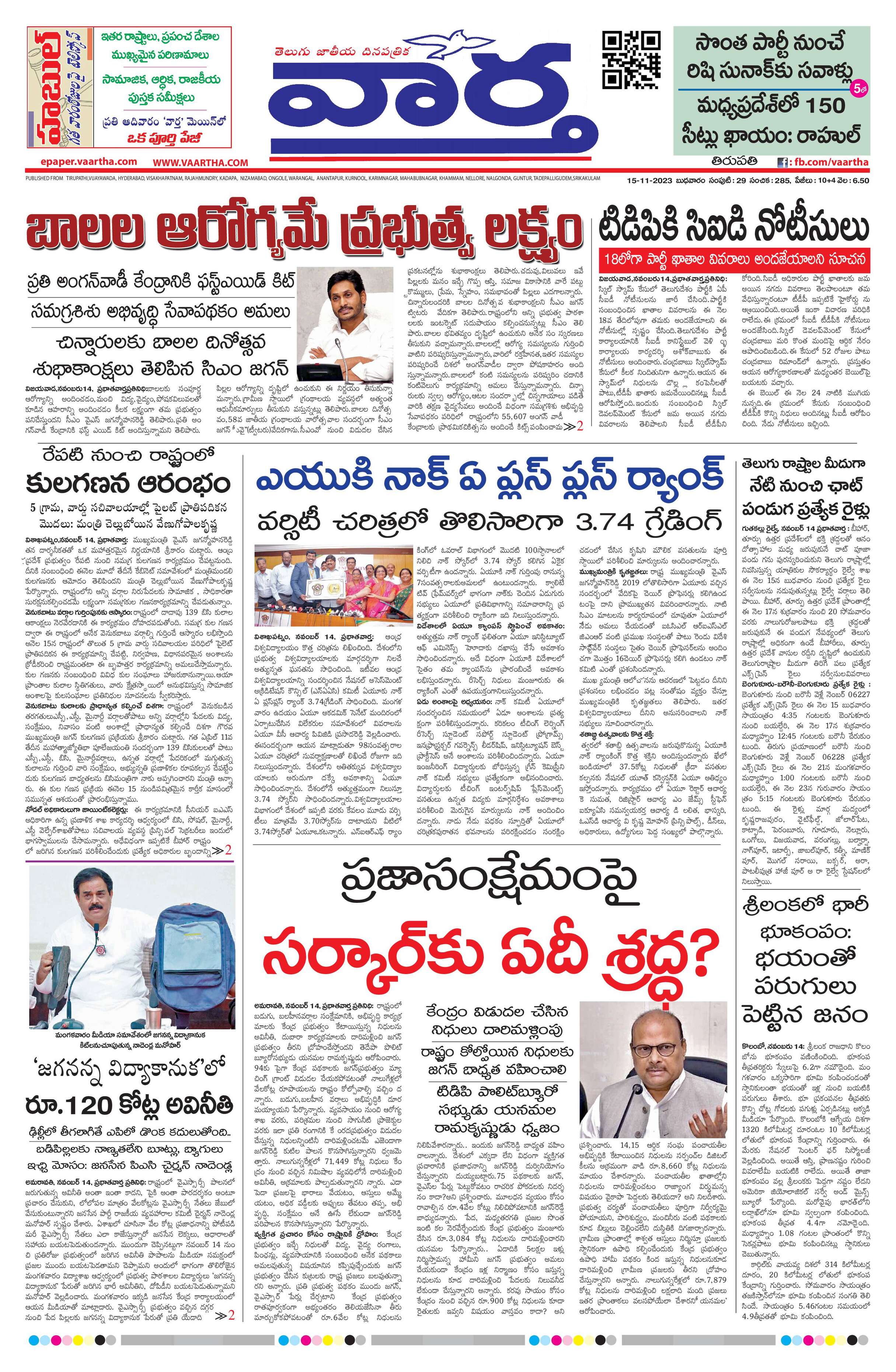 Tirupathi main - 15 Nov 2023 - - Page 1