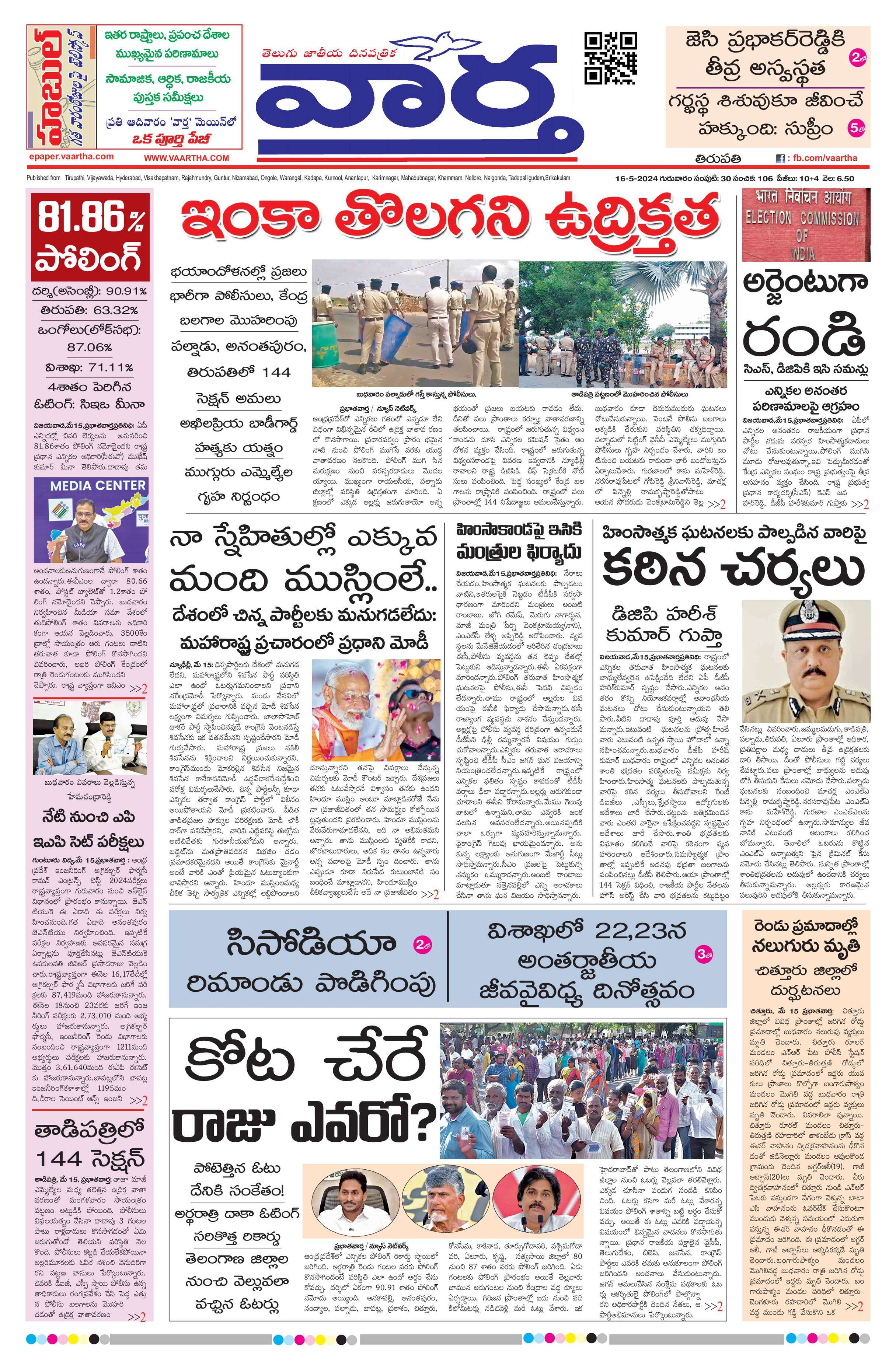 Tirupathi main - 16 May 2024 - - Page 1