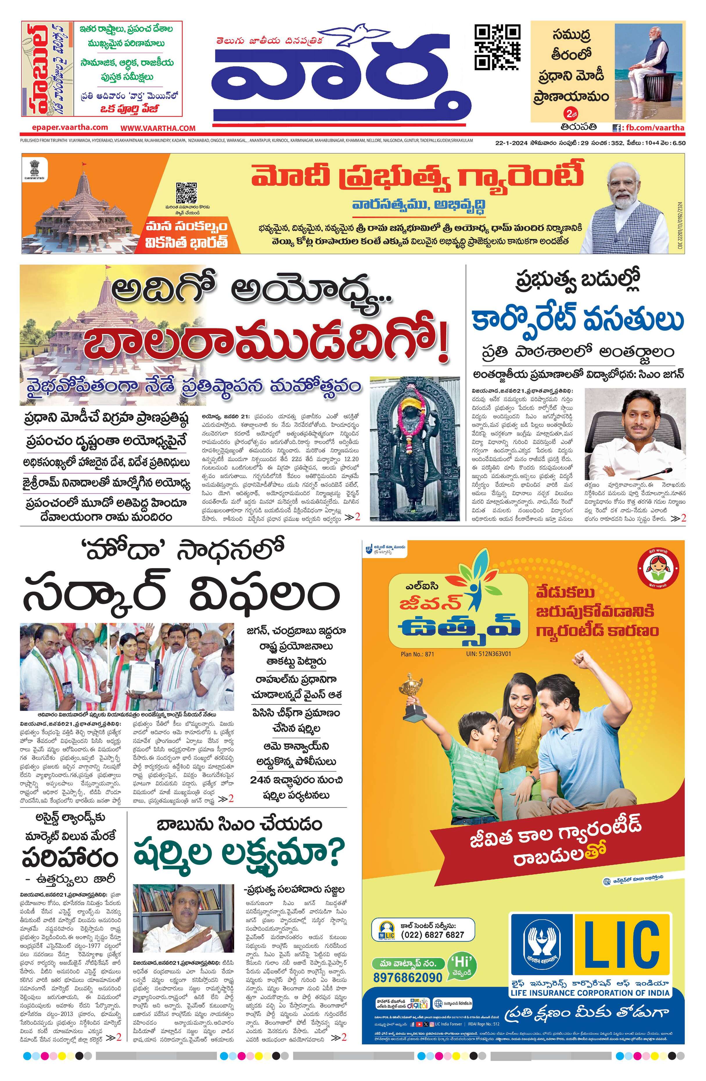 Tirupathi main - 22 Jan 2024 - - Page 1