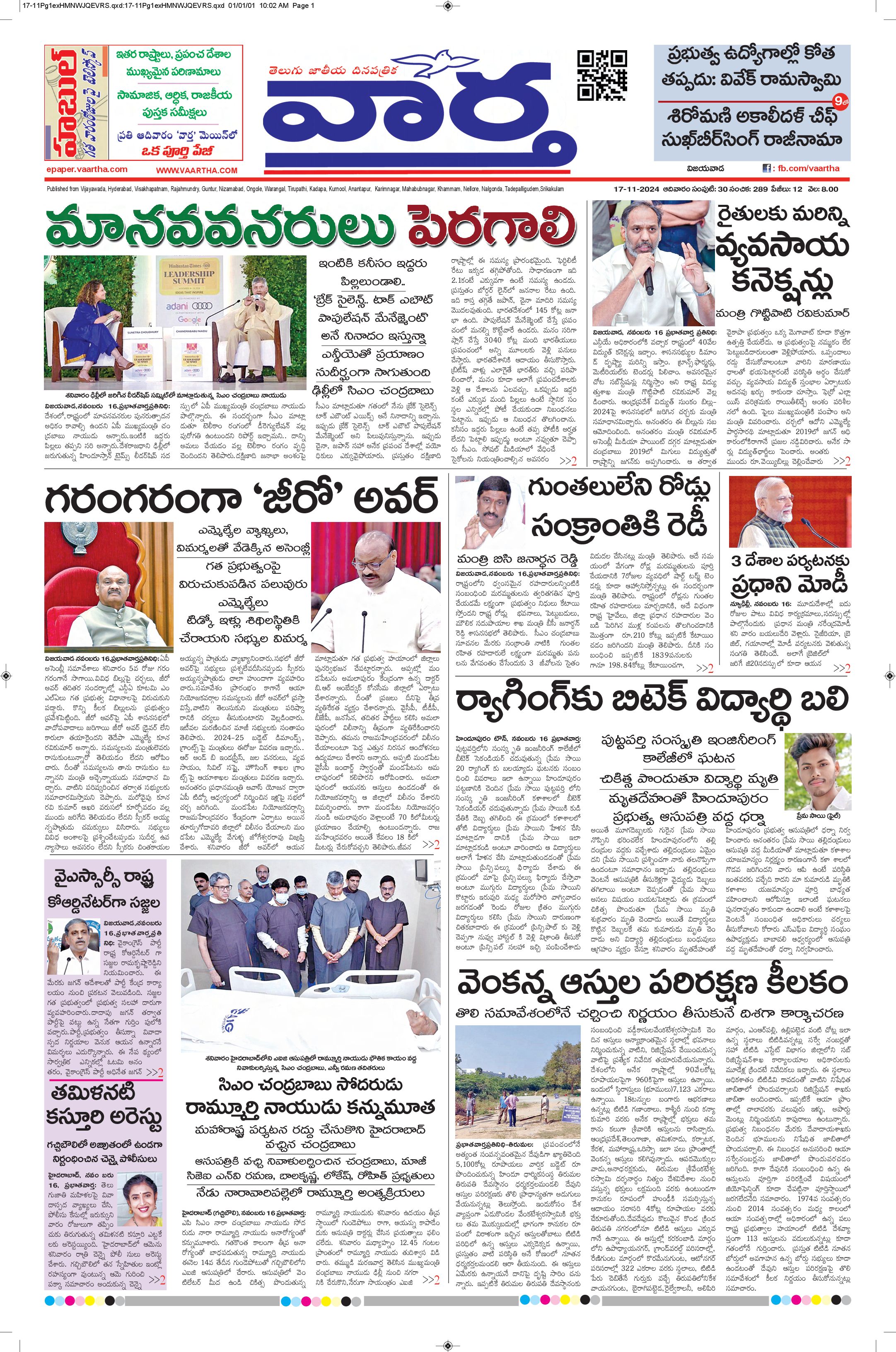 Vijayawada main - 17 Nov 2024 - - Page 1