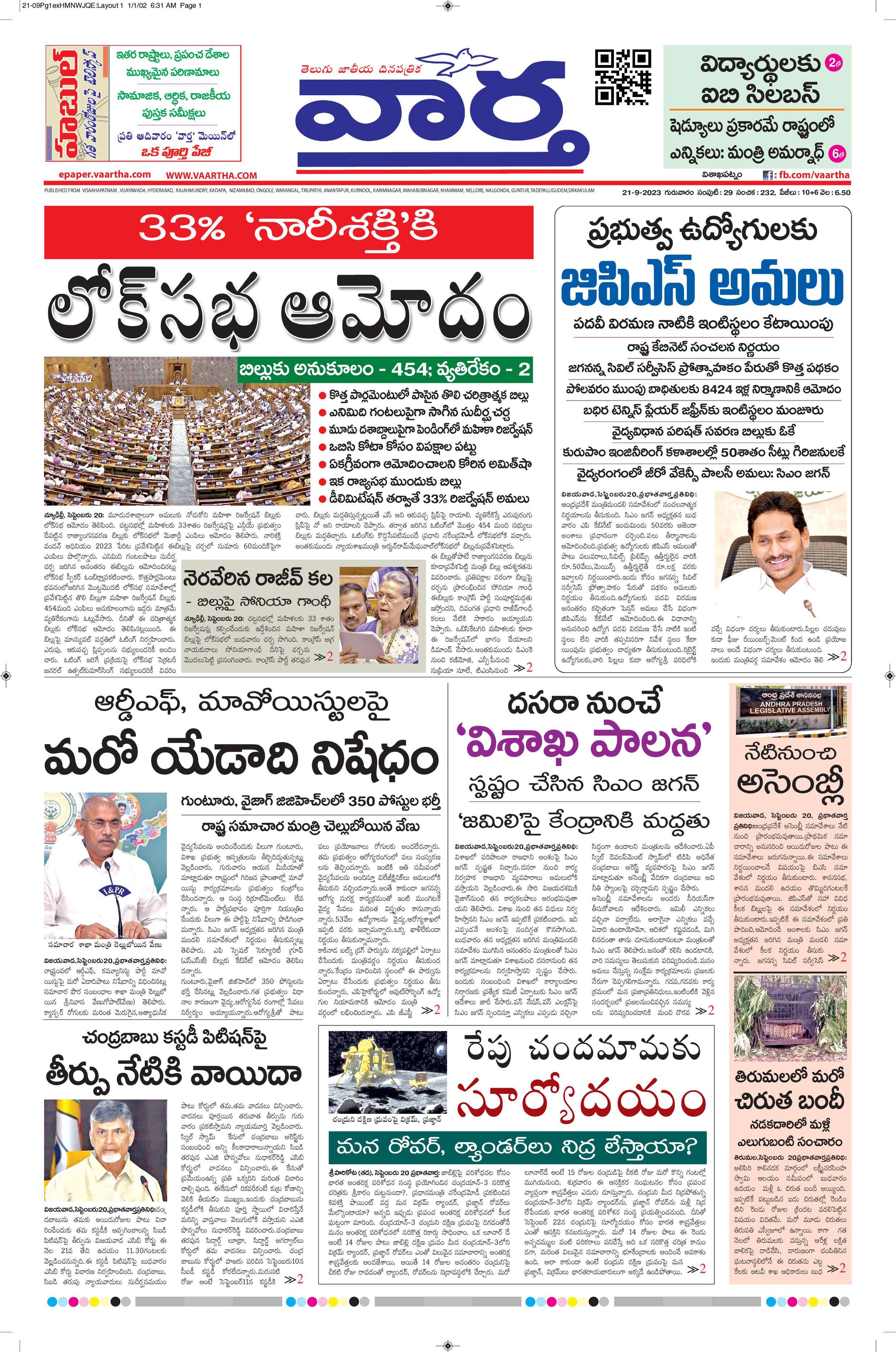 Vishakapatnam main - 21 Sep 2023 - - Page 1