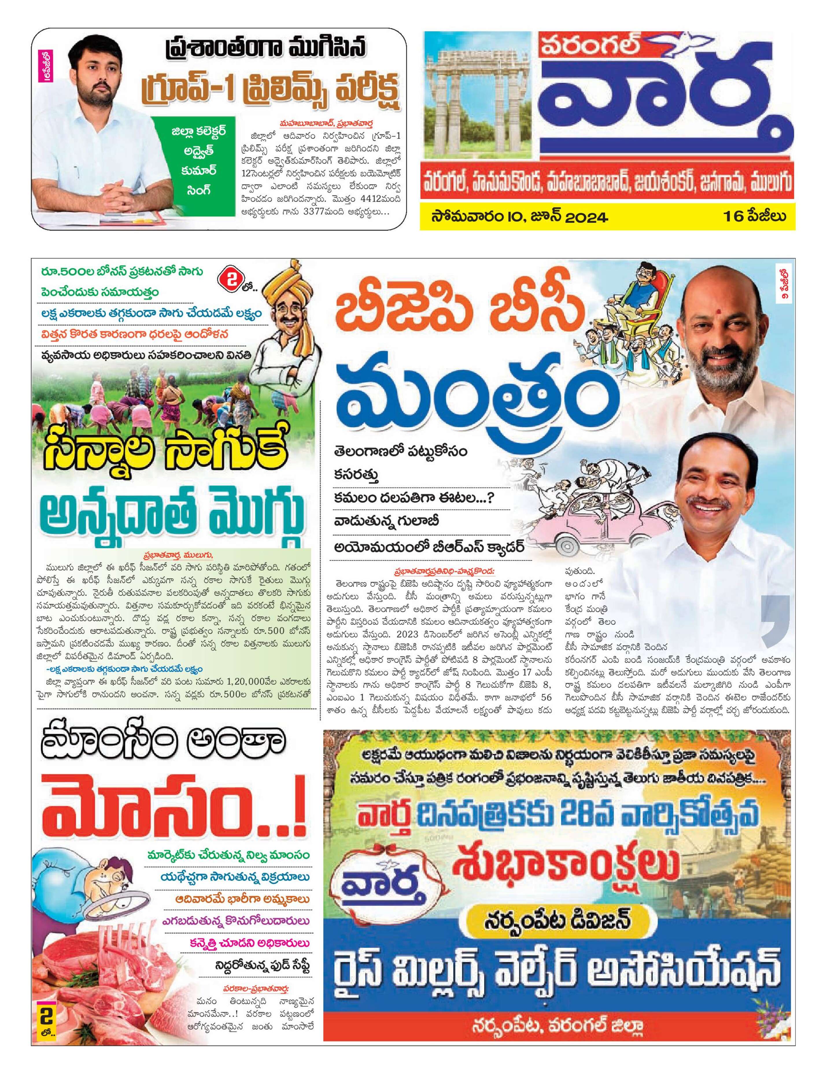 Warangal Tab - 10 Jun 2024 - - Page 1