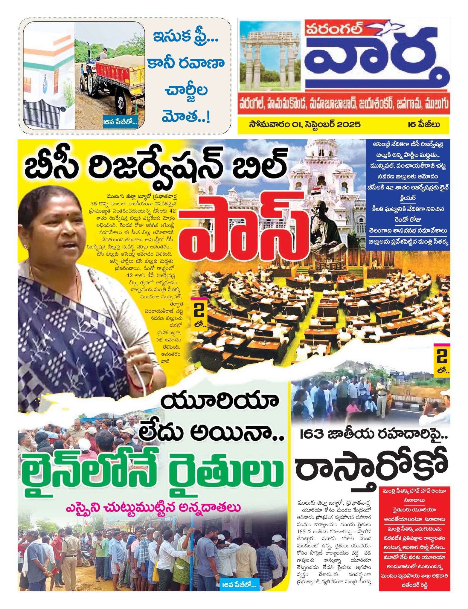 Warangal Tab - 01 Sep 2025 - - Page 1