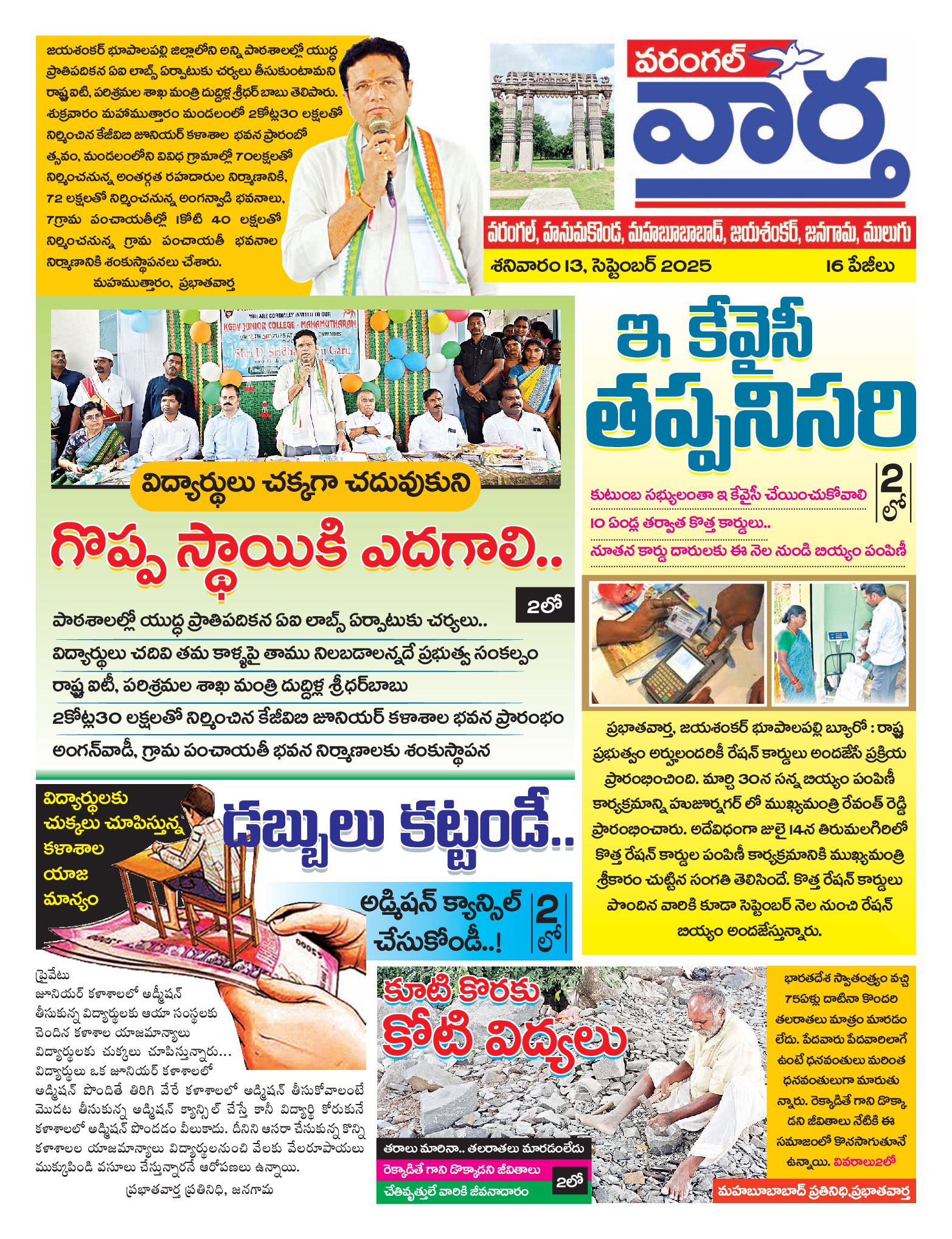 Warangal Tab - 13 Sep 2025 - - Page 1