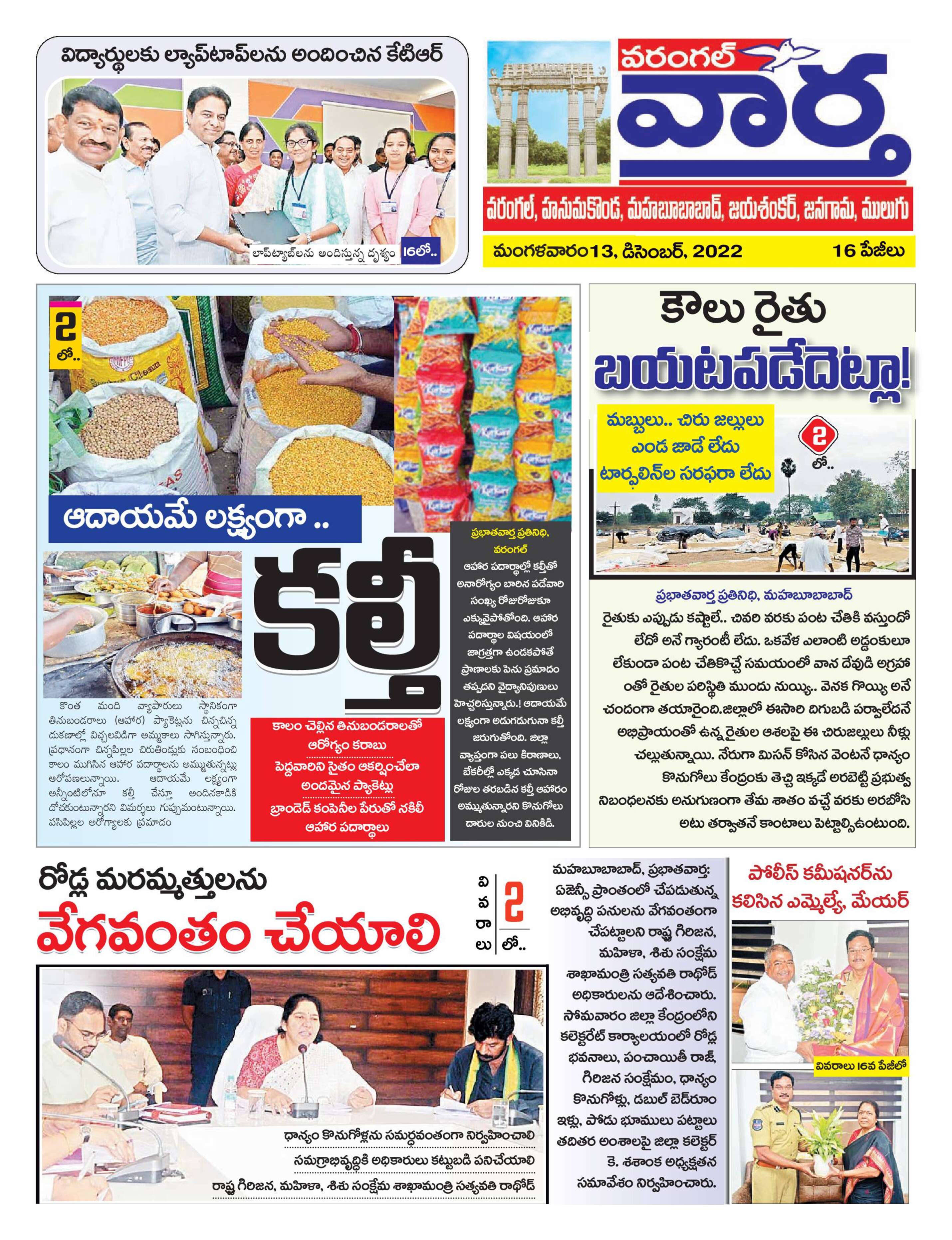 Warangal Tab - 13 Dec 2022 - - Page 1