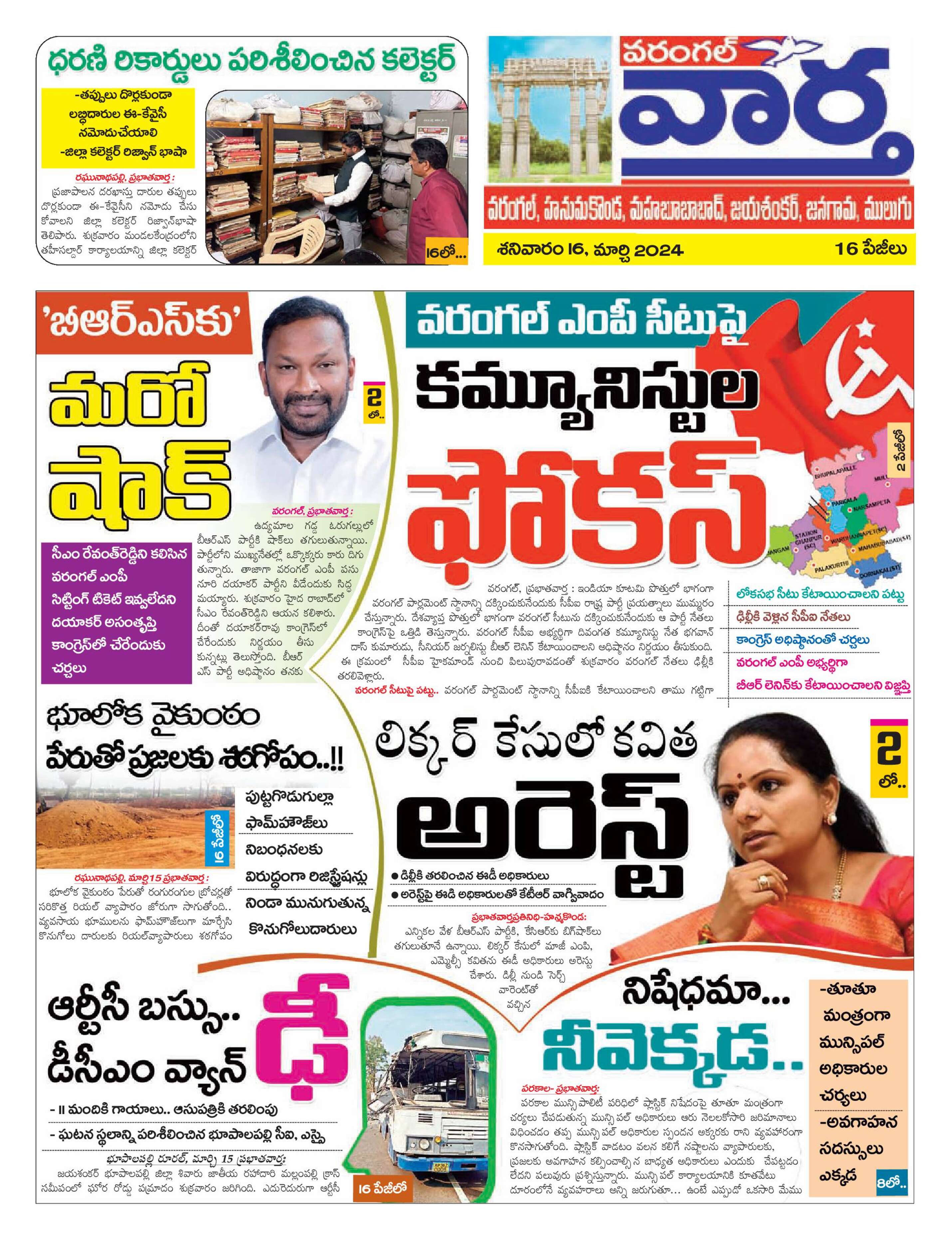 Warangal Tab - 16 Mar 2024 - - Page 1