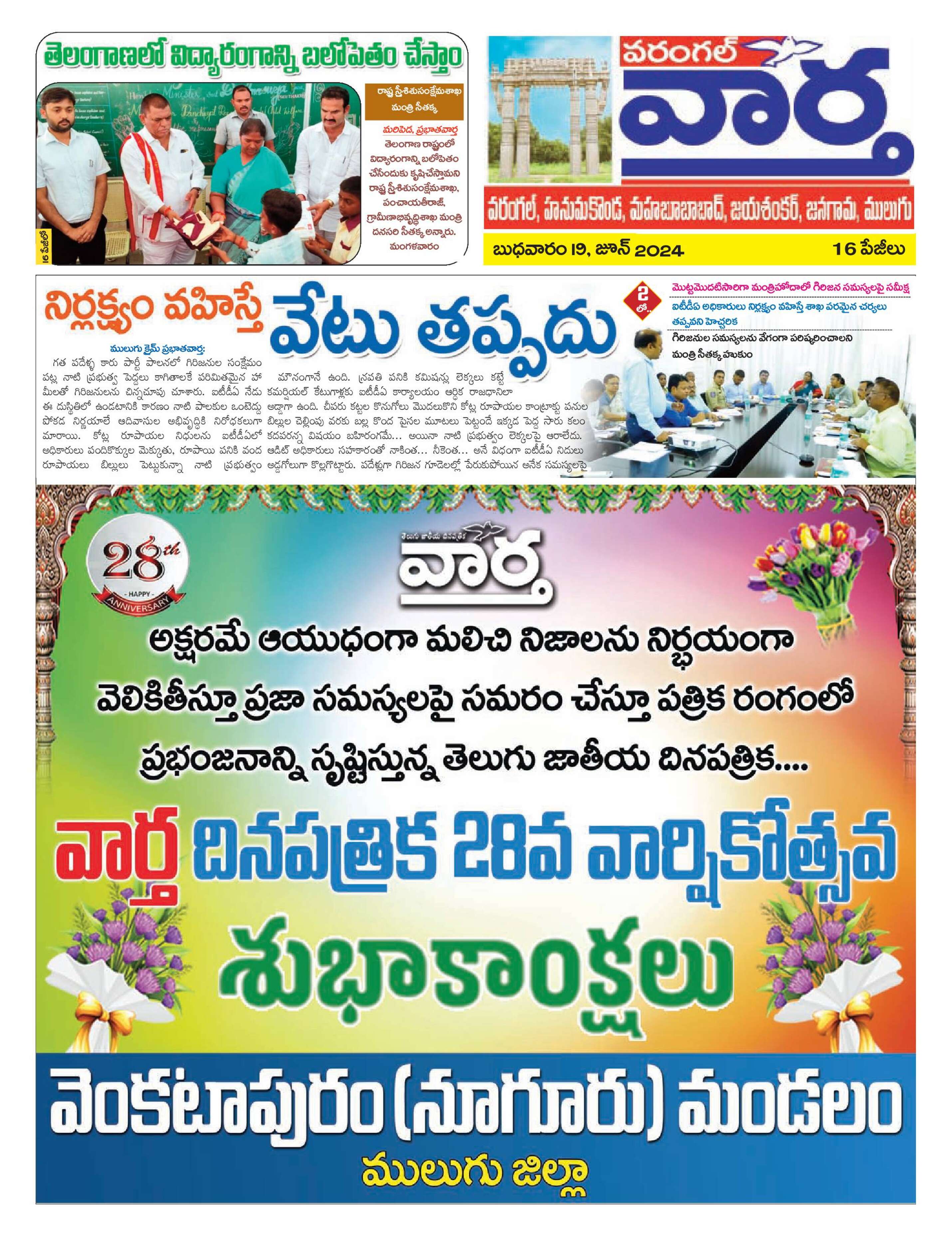 Warangal Tab - 19 Jun 2024 - - Page 1