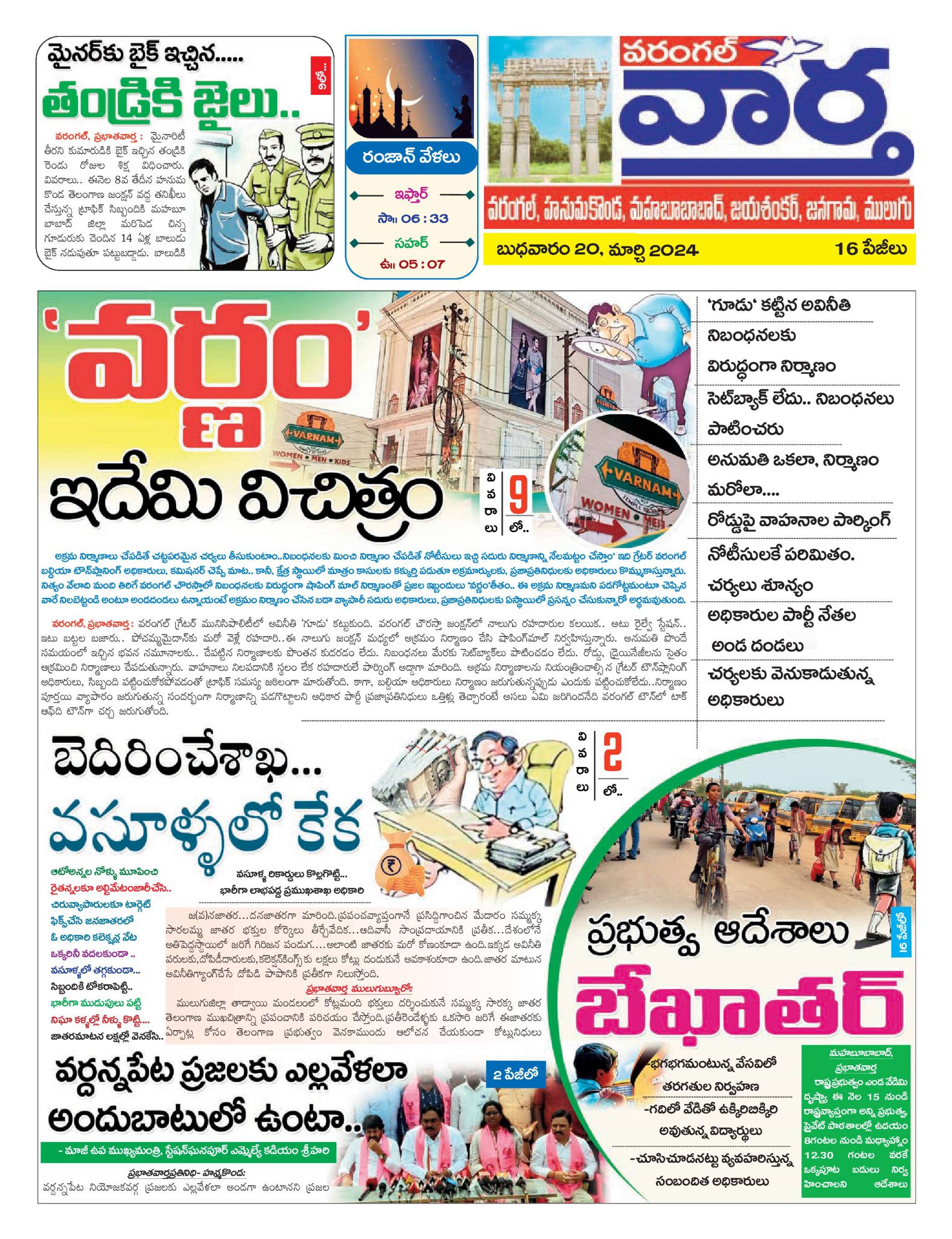 Warangal Tab - 20 Mar 2024 - - Page 1