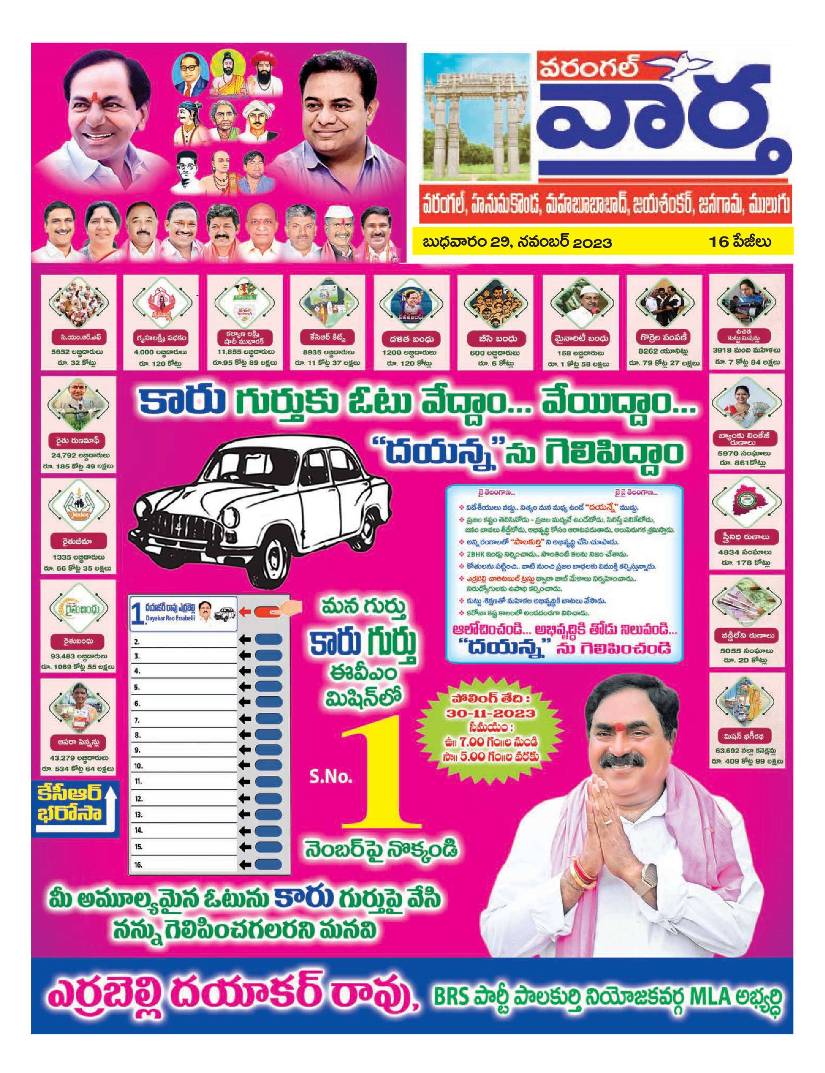 Warangal Tab - 29 Nov 2023 - - Page 1
