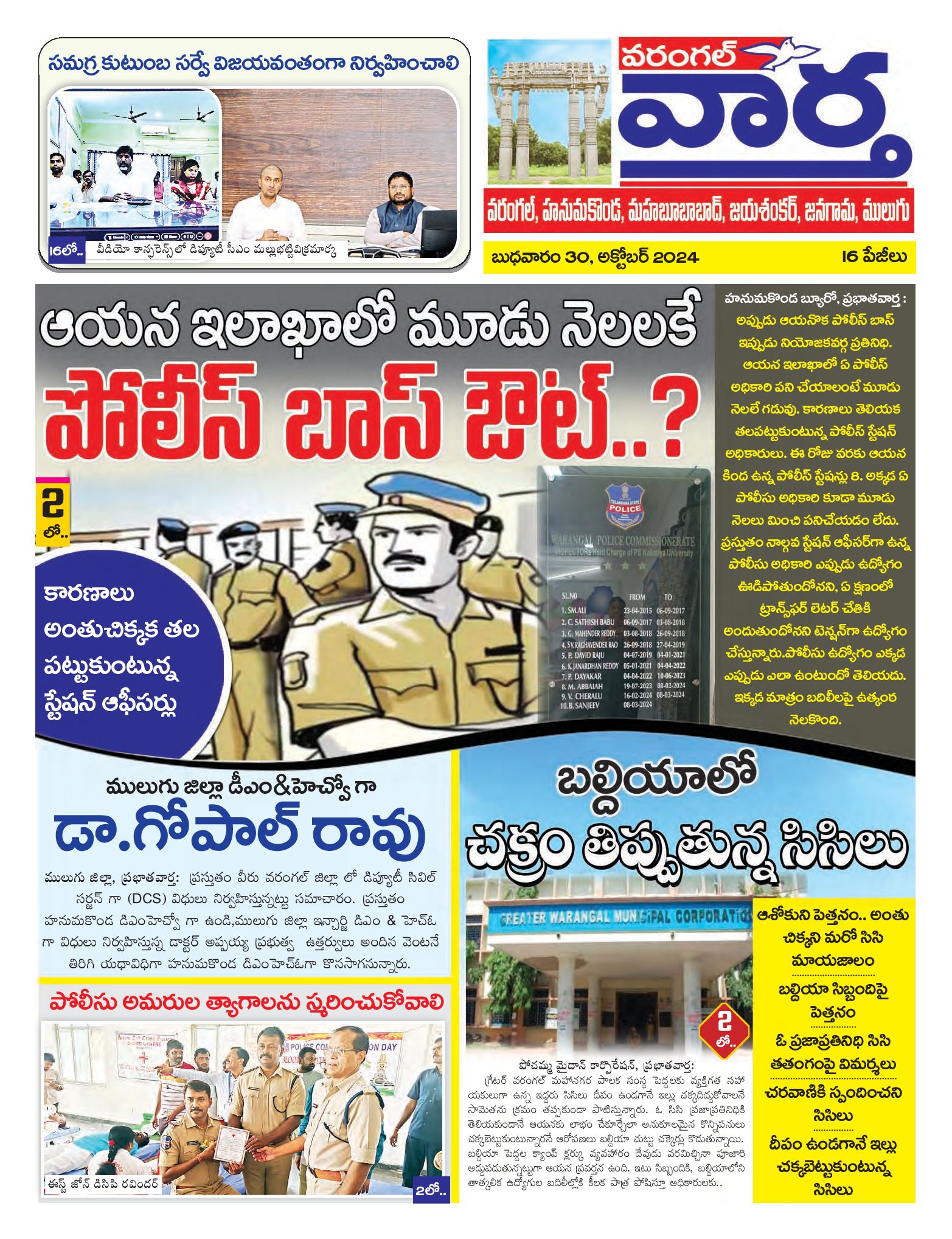 Warangal Tab - 30 Oct 2024 - - Page 1
