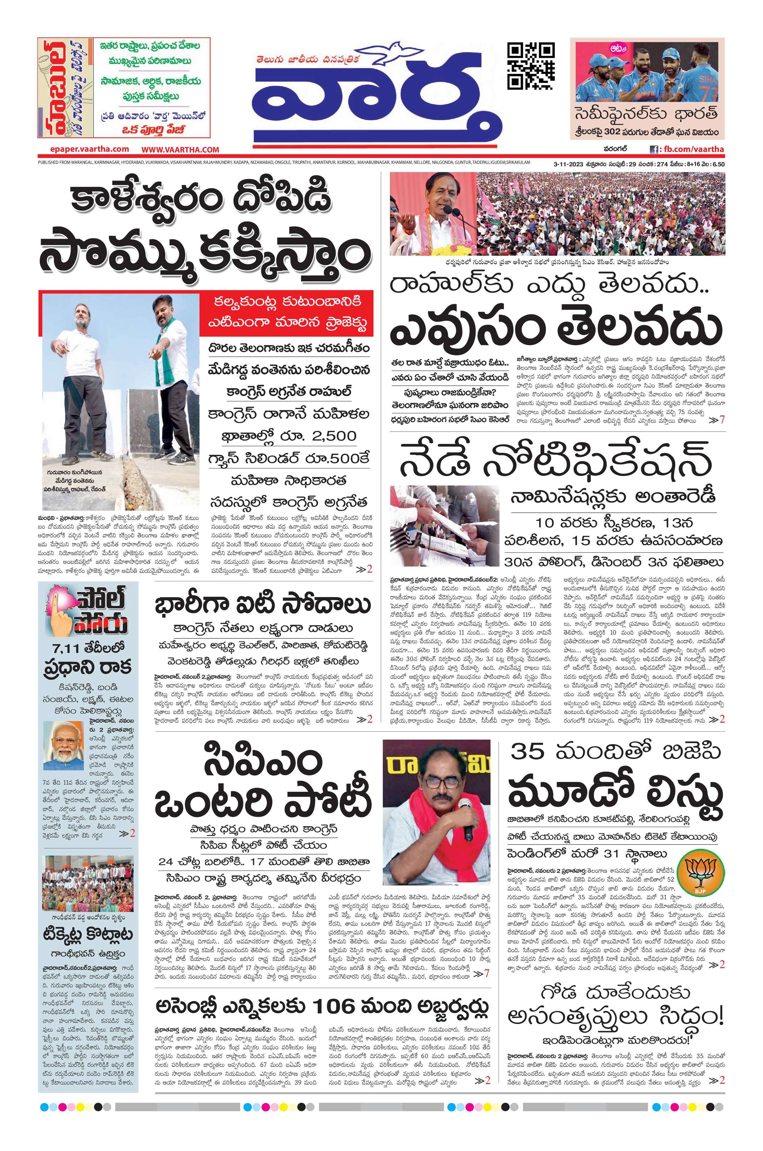 Warangal main - 03 Nov 2023 - - Page 1