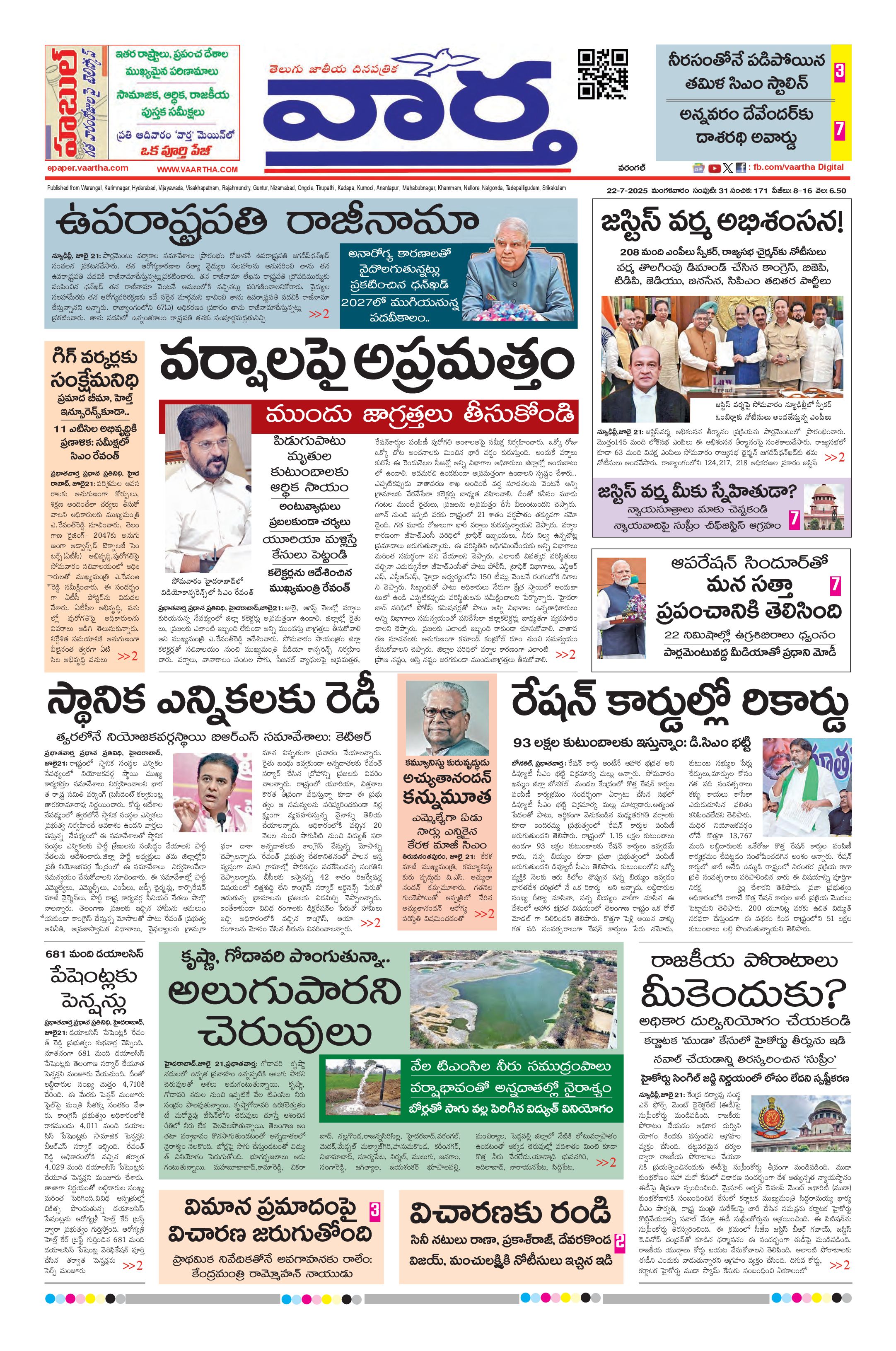 Warangal main - 22 Jul 2025 - - Page 1