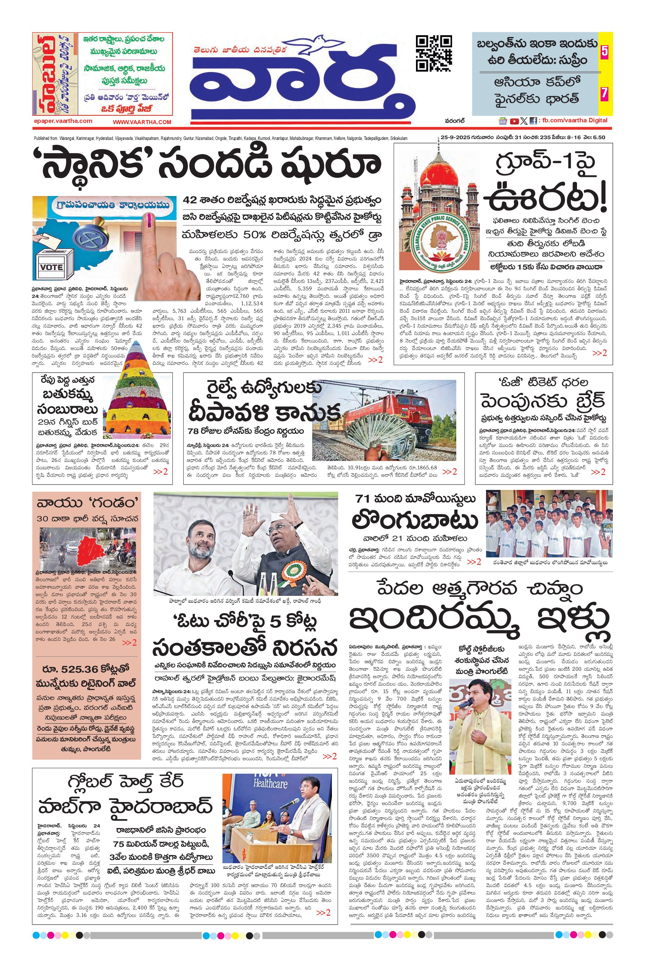 Warangal main - 25 Sep 2025 - - Page 1
