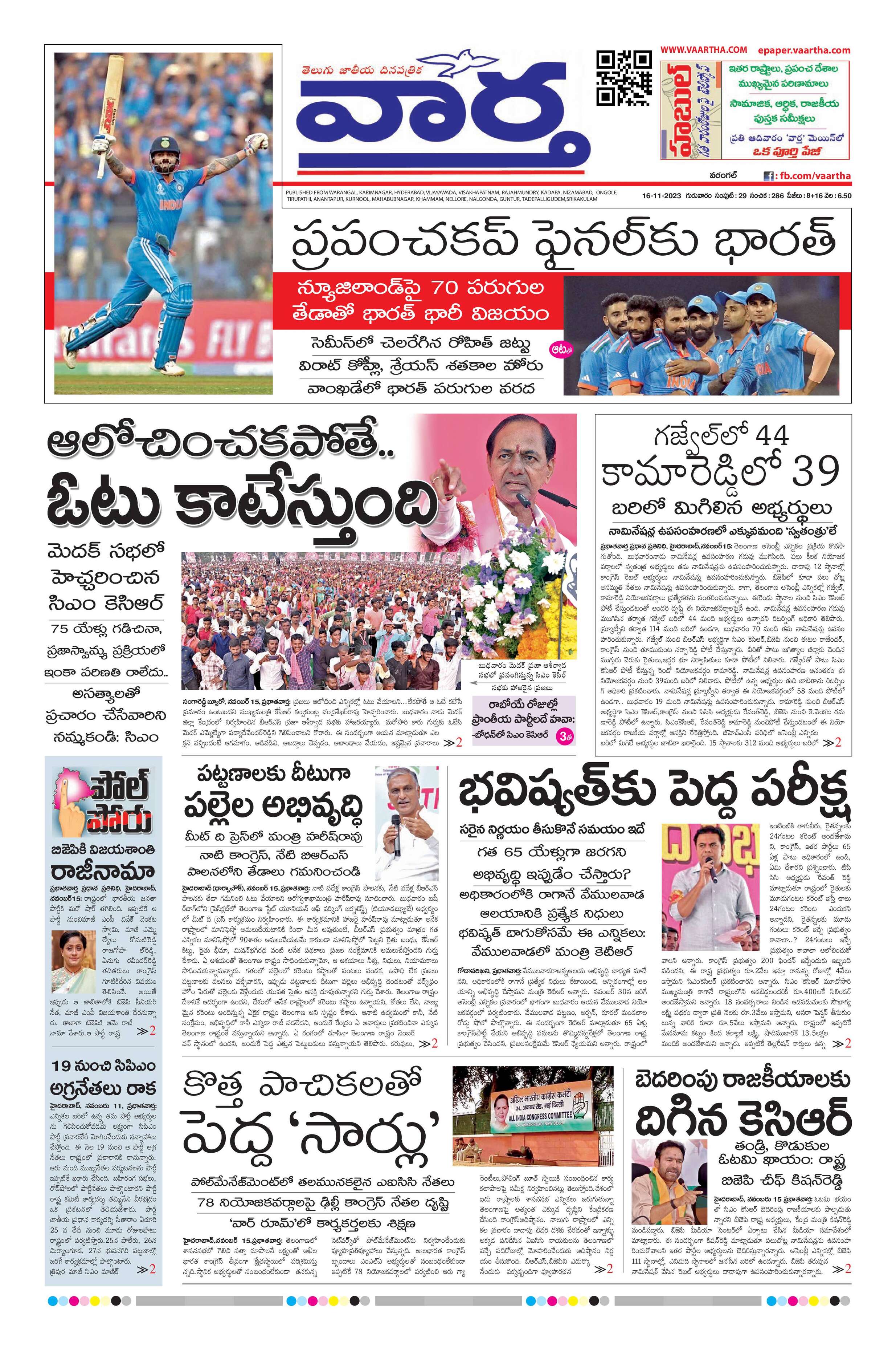 Warangal main - 16 Nov 2023 - - Page 1