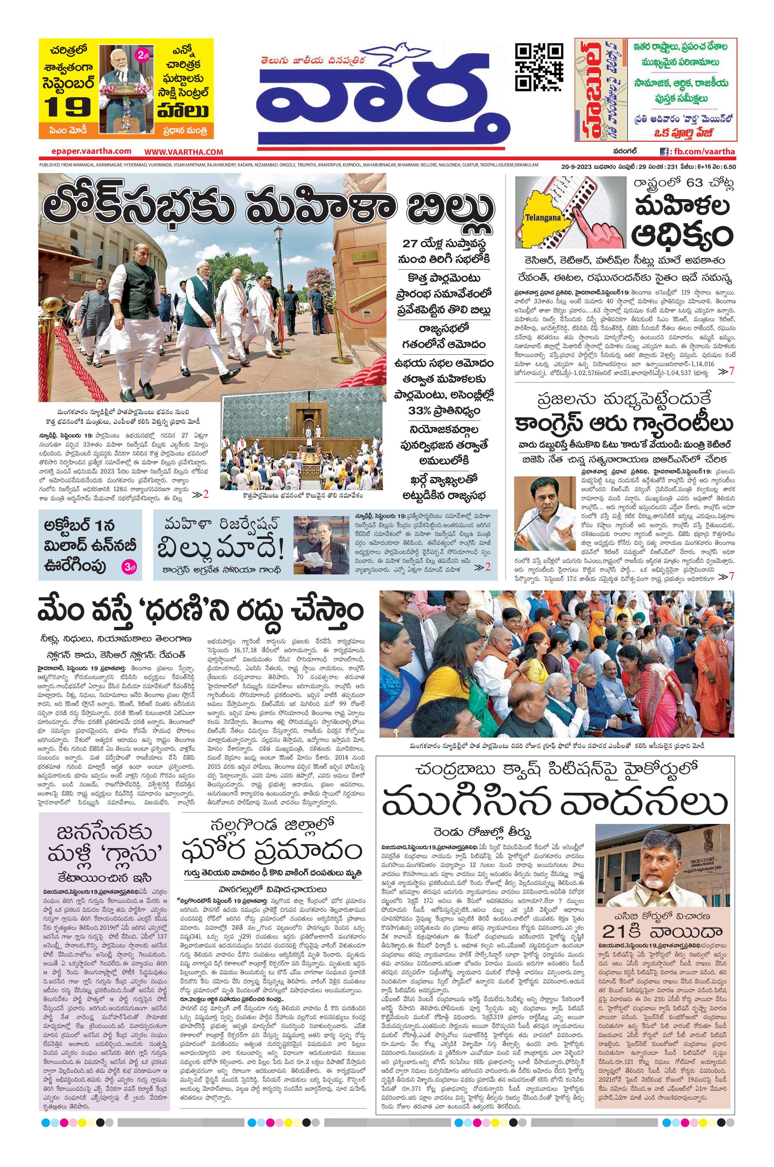 Warangal main - 20 Sep 2023 - - Page 1