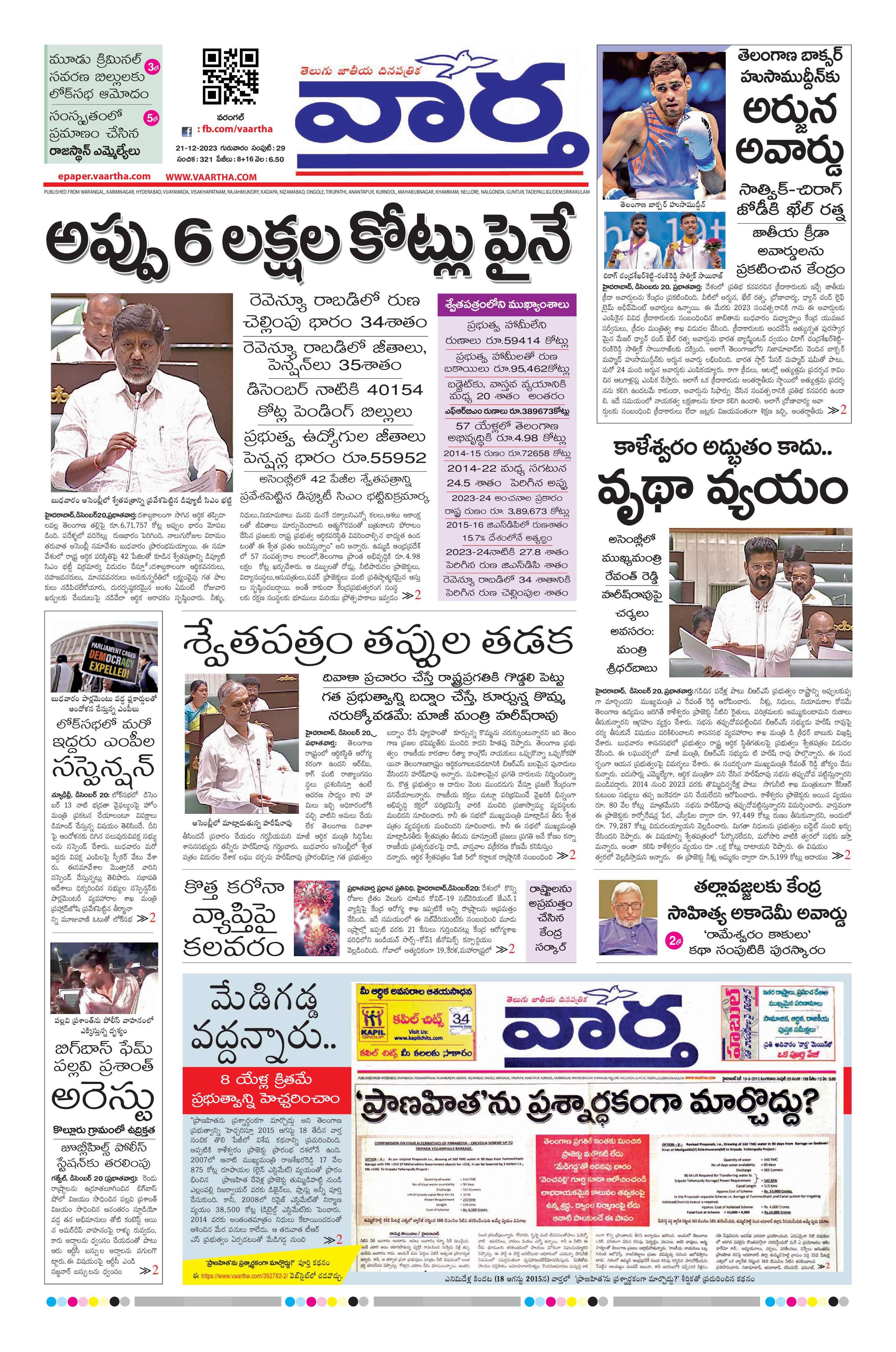 Warangal main - 21 Dec 2023 - - Page 1