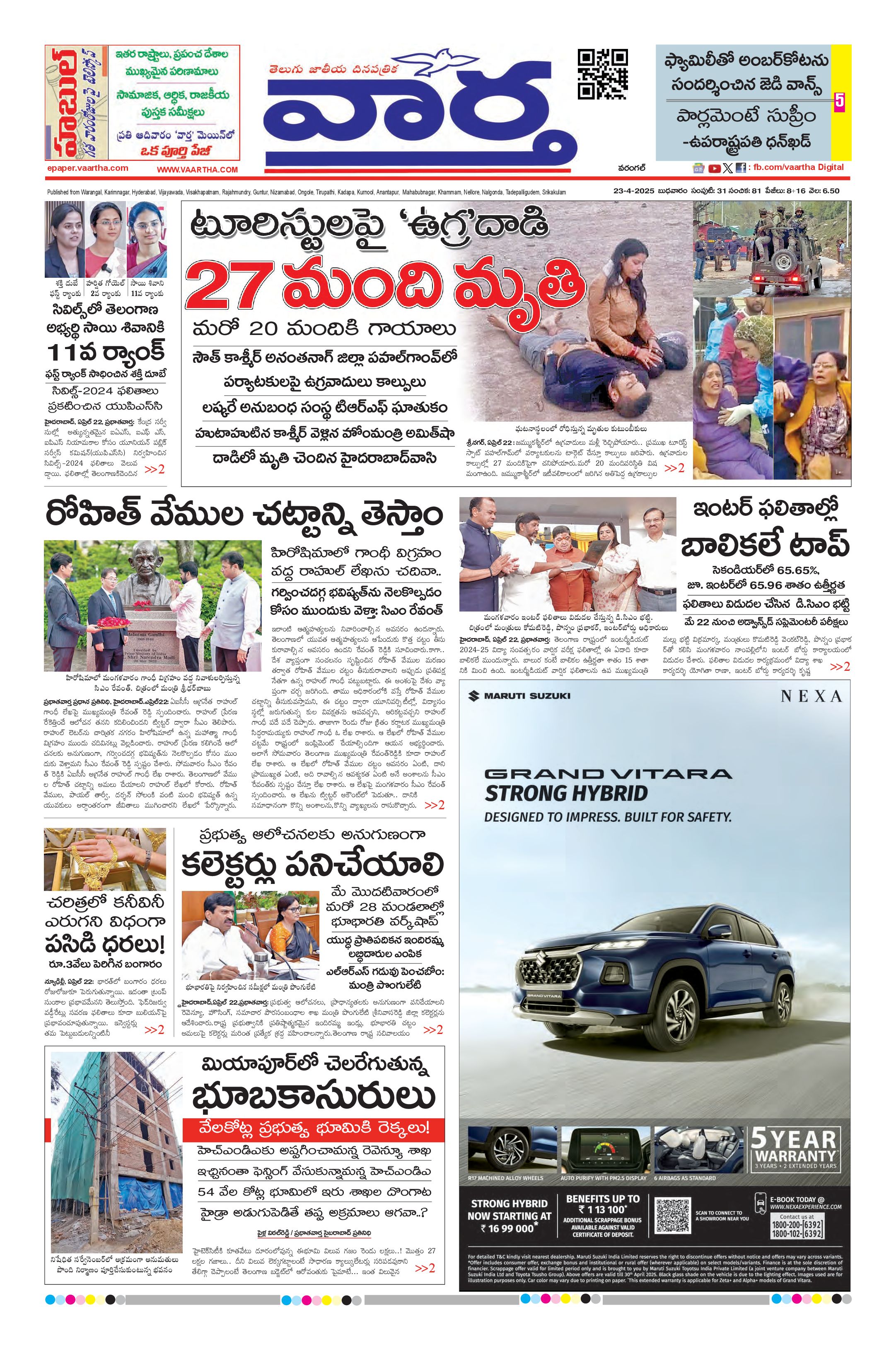 Warangal main - 23 Apr 2025 - - Page 1
