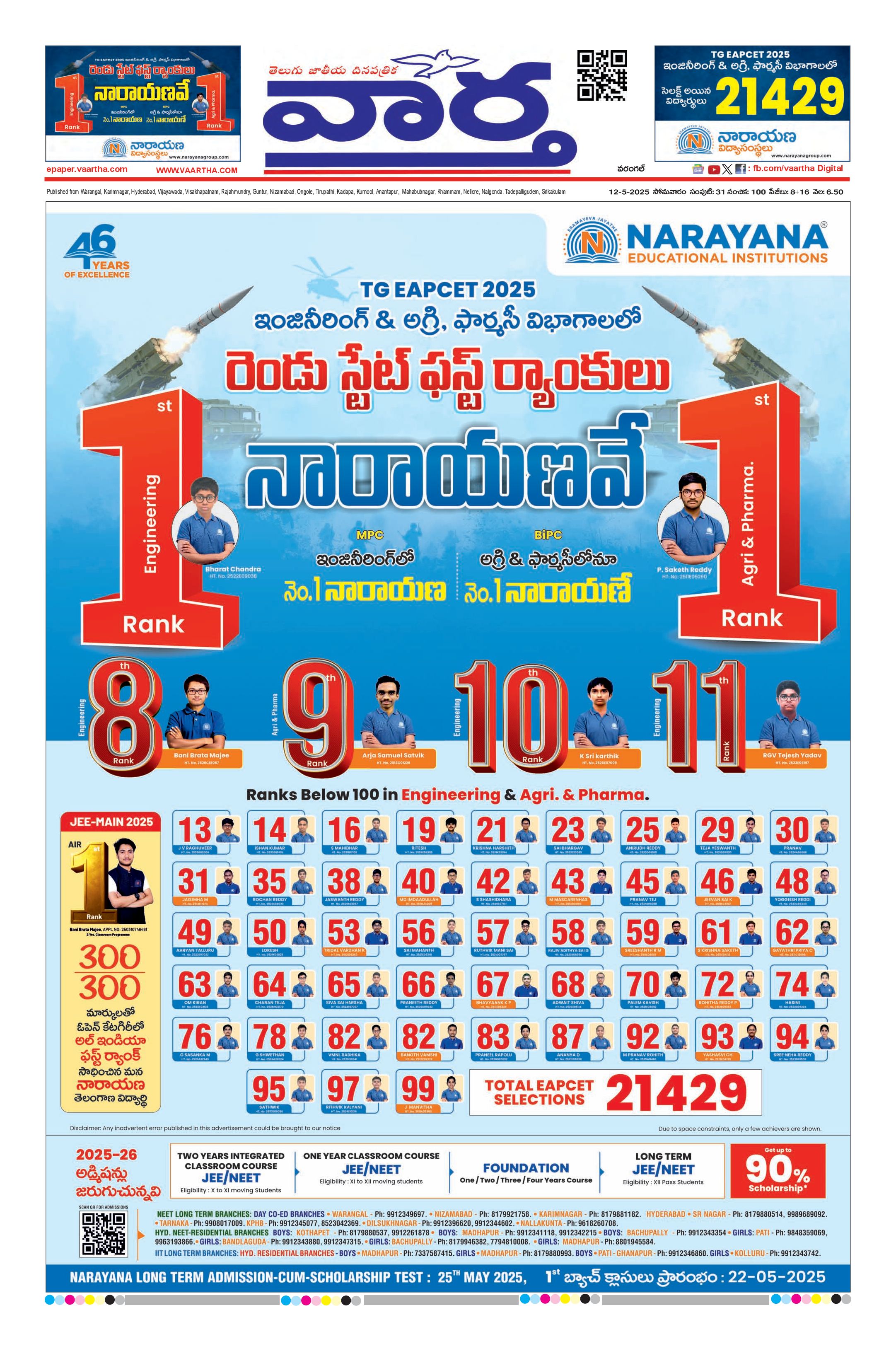 Warangal main - 12 May 2025 - - Page 1
